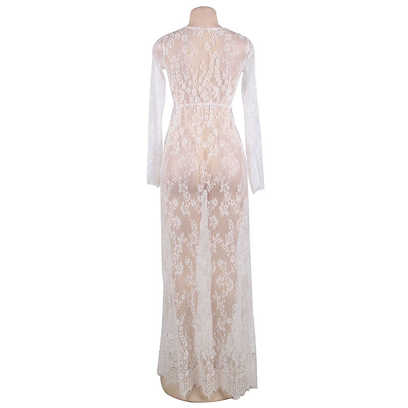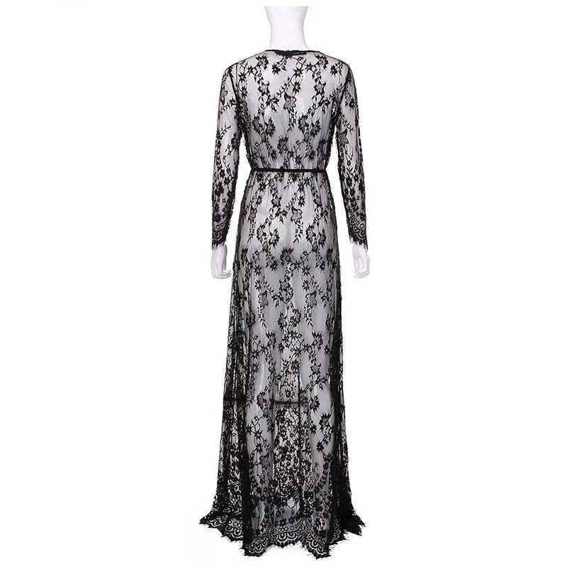 Ночная рубашка женская кружевная, прозрачная, с V-образным вырезом