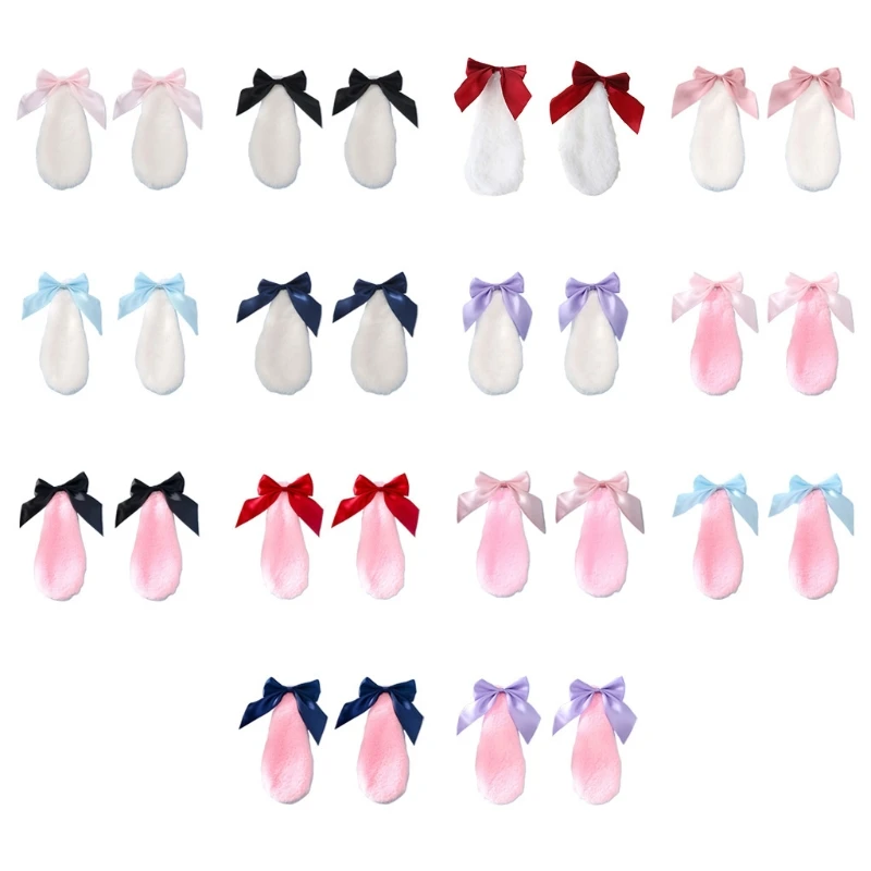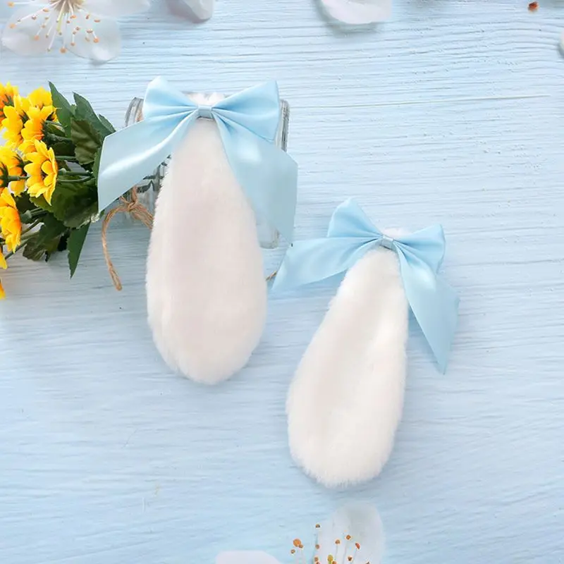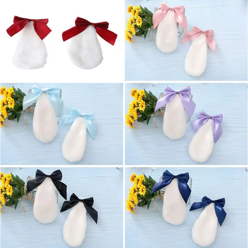 Заколка для волос Kawaii для женщин и девушек, милый кролик, кролик, плюшевый, витой, цвет конфет, лента, бант, Лолита, косплей, аксессуары для волос