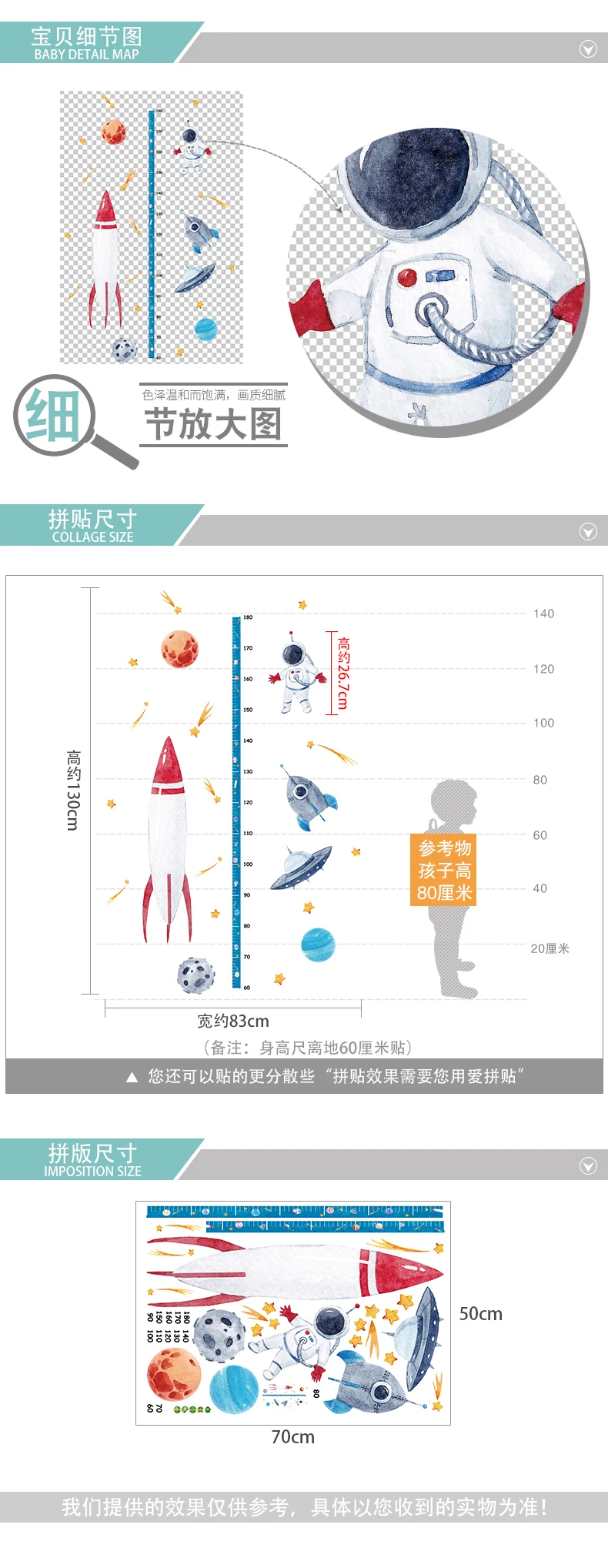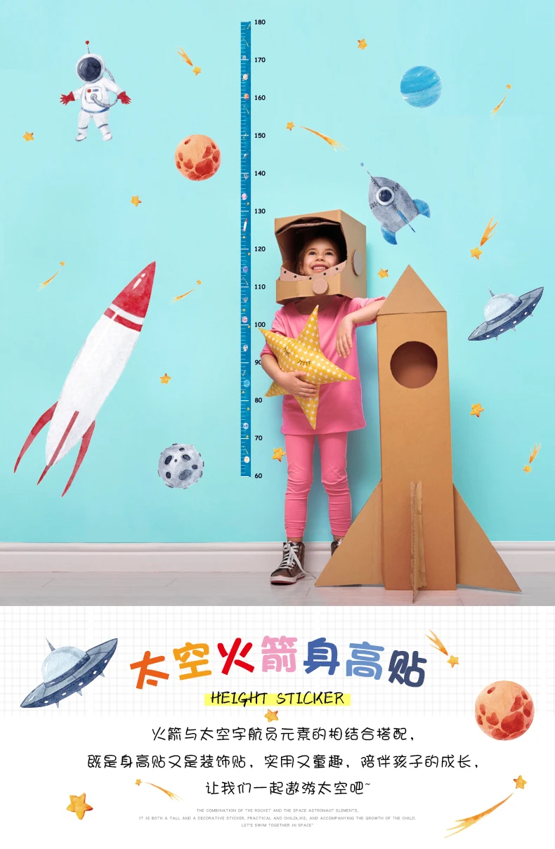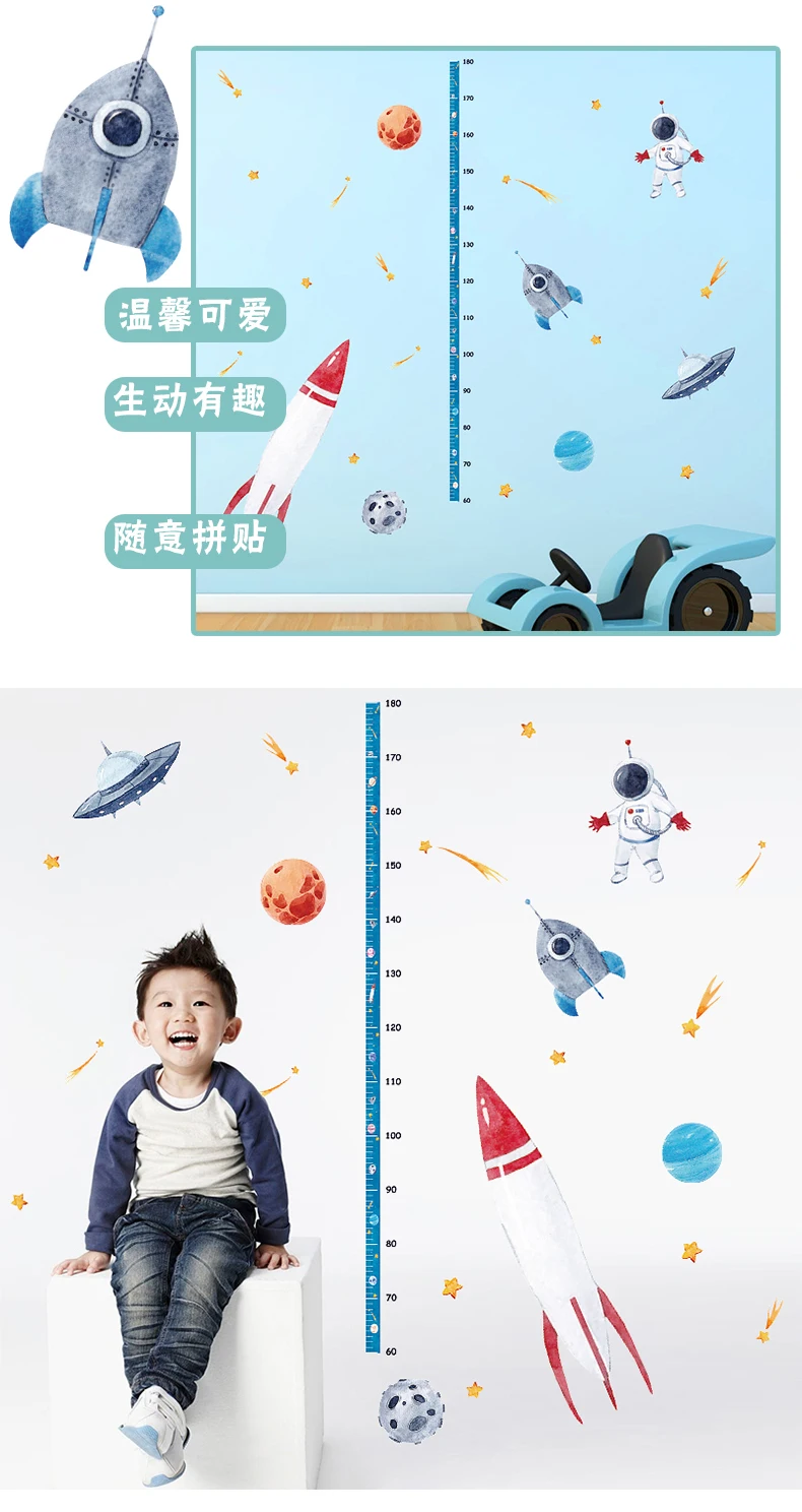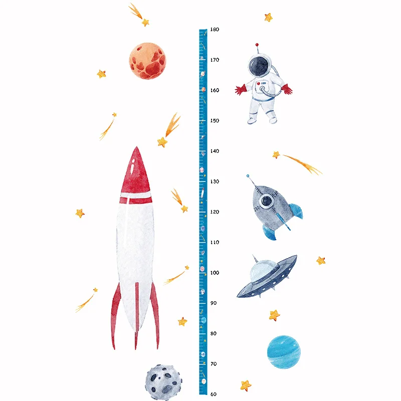Милая мультяшная измерительная линейка для роста космических ракет, Настенная Наклейка для детской комнаты, таблица роста, декор для детской комнаты, настенное искусство 50*70 см