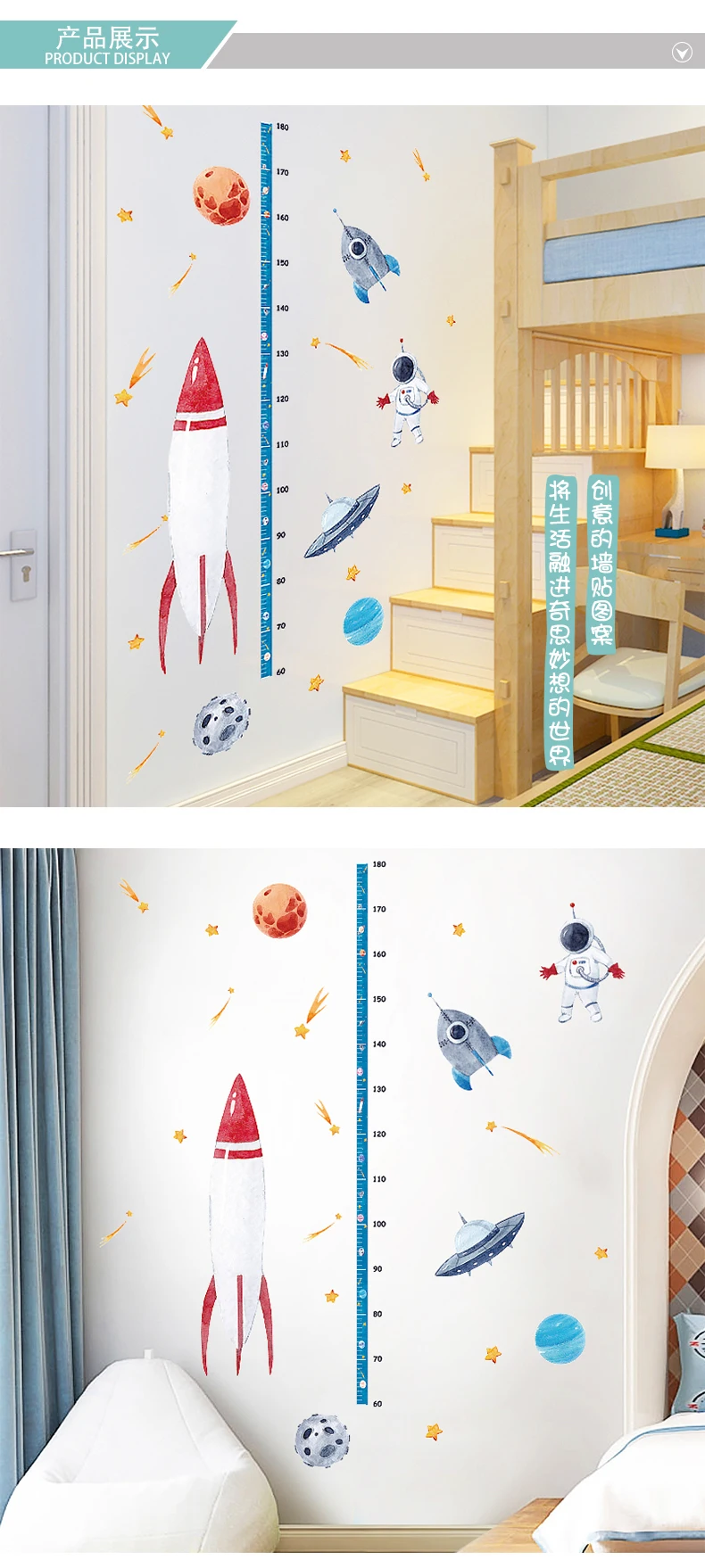 Космическая ракета, Детская Наклейка по высоте, Мультяшные настенны...