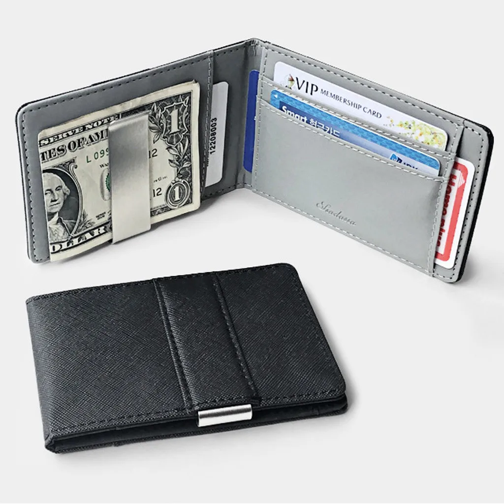 Кошелек мужской кожаный, тонкий, двойной, с металлическим зажимом