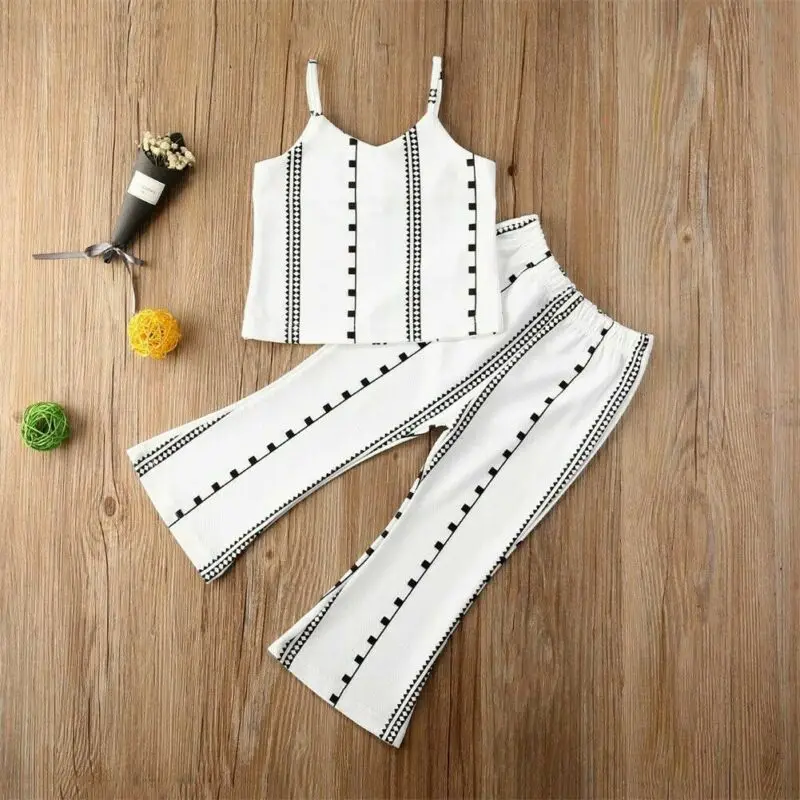 Комплект одежды для девочек из 2 предметов, жилет без рукавов с принтом + длинные брюки-клеш, лето От 1 до 6 лет, одежда для детей и малышей