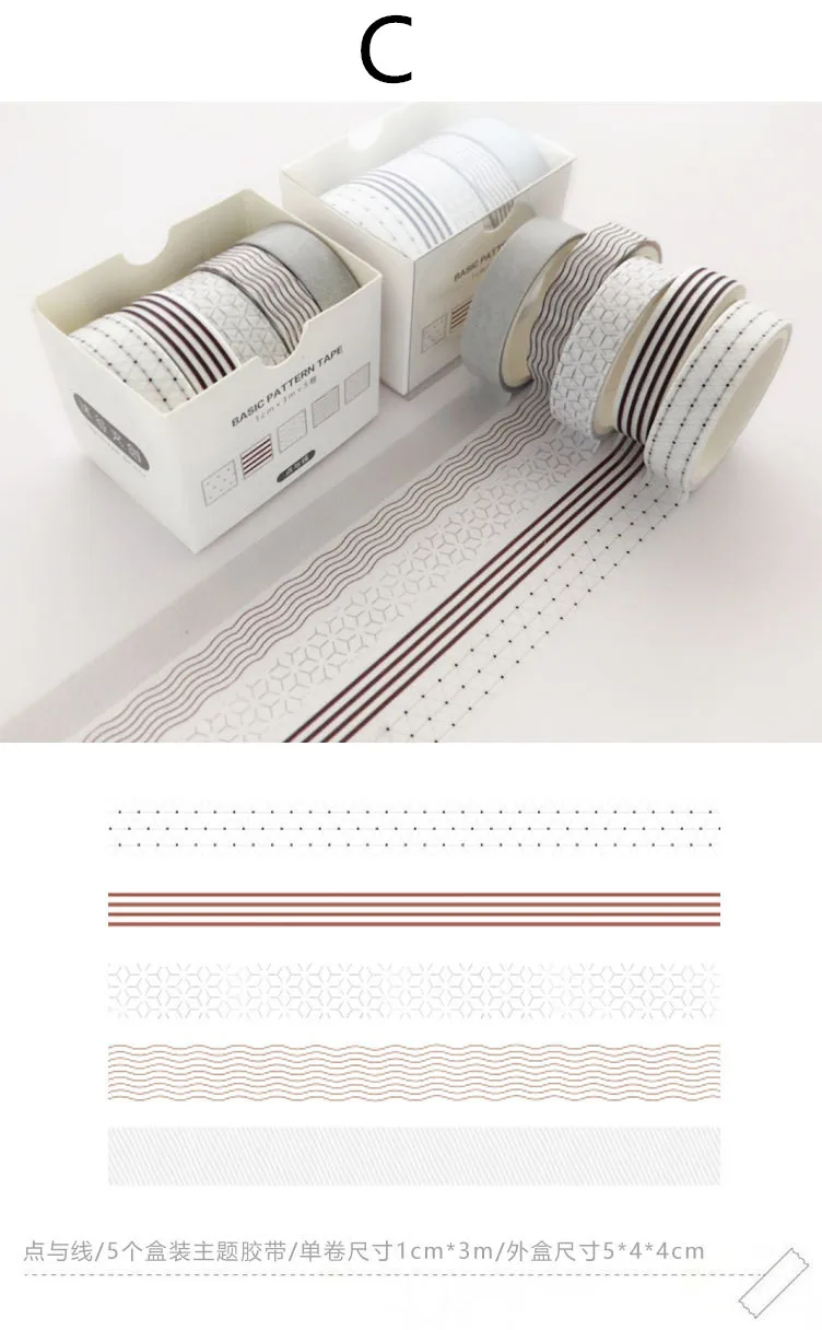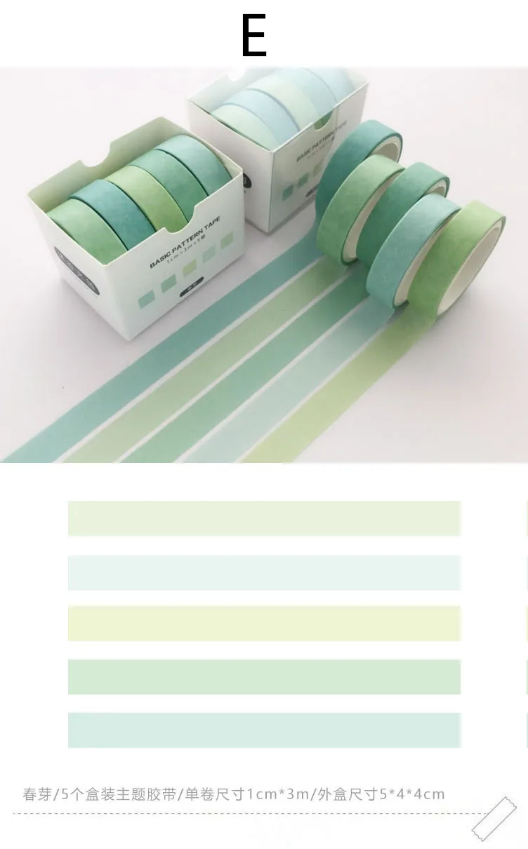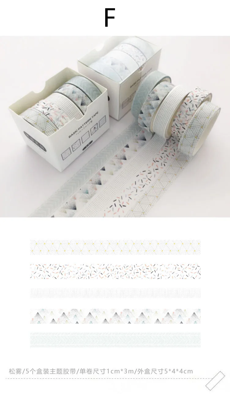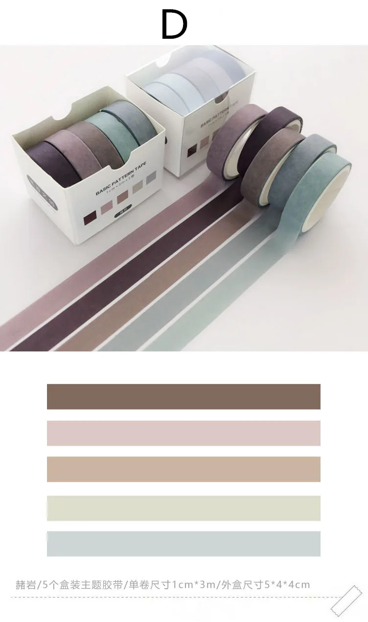 Клейкая лента Washi 5 шт.компл., милая сетка, однотонная, базовая с...