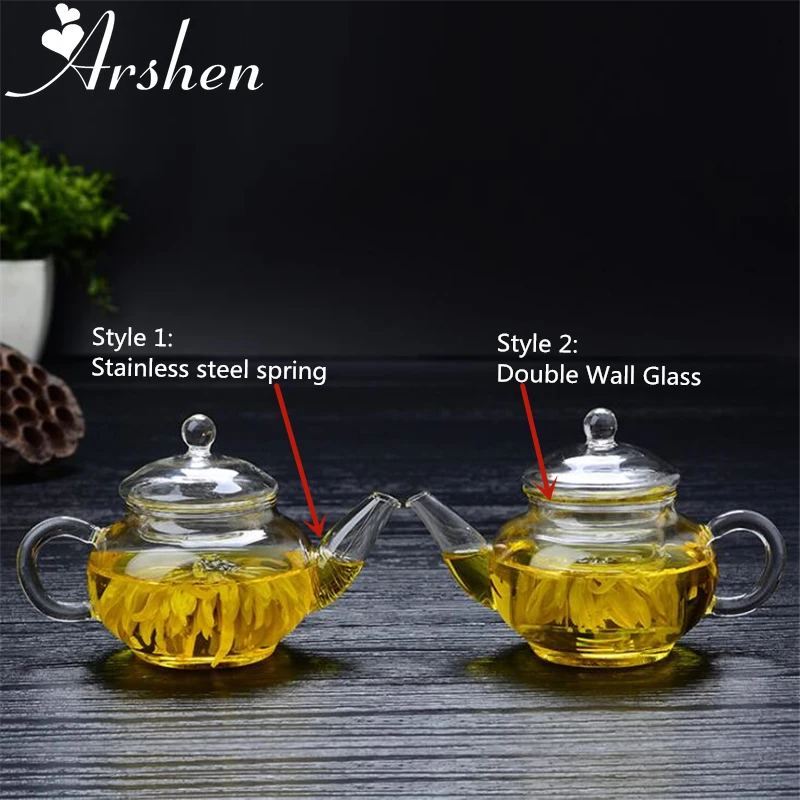 Заварочный чайник Arshen из термостойкого стекла с двойными стенками или с пружинным заваром из нержавеющей стали, прозрачное стекло, 250 мл