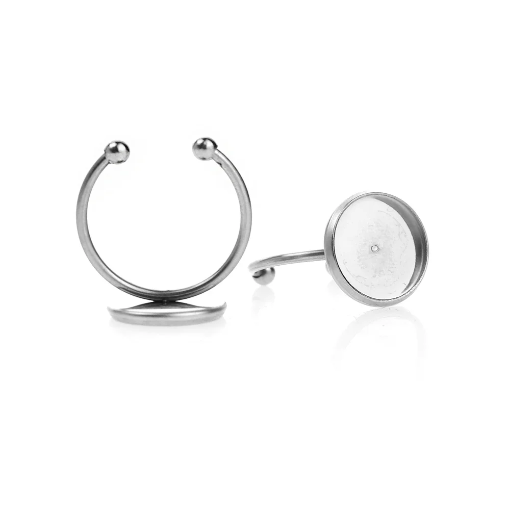 Name:10pcs/Lot No Fade Stainless Steel Adjustable Ring Settings Blank/Base Fit 12mm Glass Cabochons DIY Jewelry Making Findings