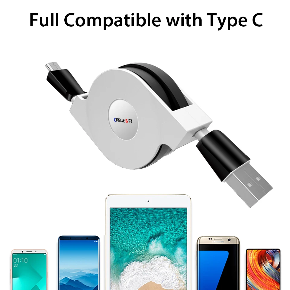 Выдвижной USB-кабель типа C, кабель для быстрой зарядки для Samsung...