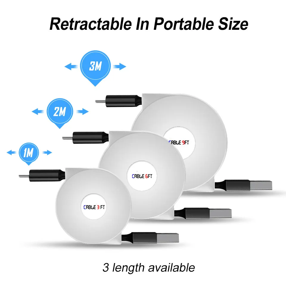 Особенности: ▲ Выдвижной порт типа c, различные длины могут удовлетворить ваши различные требования в разных ситуациях ▲ Изготовлен из высококачественного материала TPE и плоской формы лапши, поможет вам избавиться от проблем с обертыванием ▲ Несколько вариантов на выбор, 3 длины, 7 цветов ▲ Поддержка зарядки/передачи данных