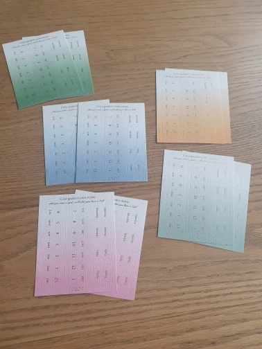 Получил во Франции за 20 дней Соответствует, зернистый толстый индекс бумаги немного пластифицирован, он должен быть твердым. Очень красивые градиентные цвета.