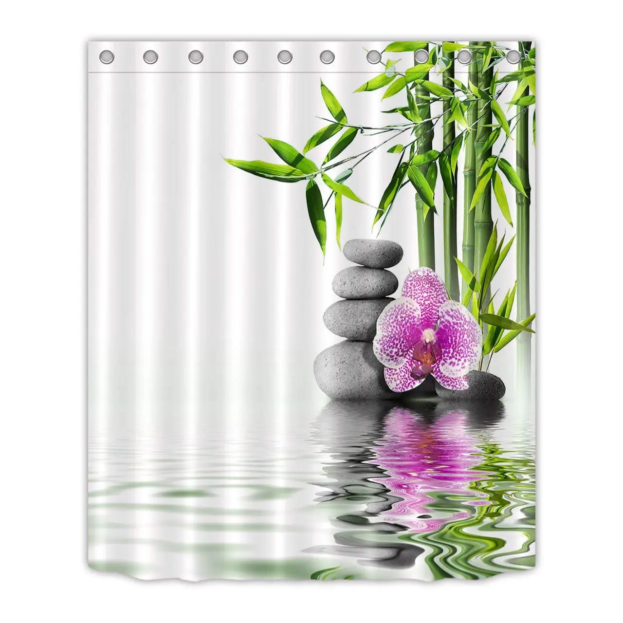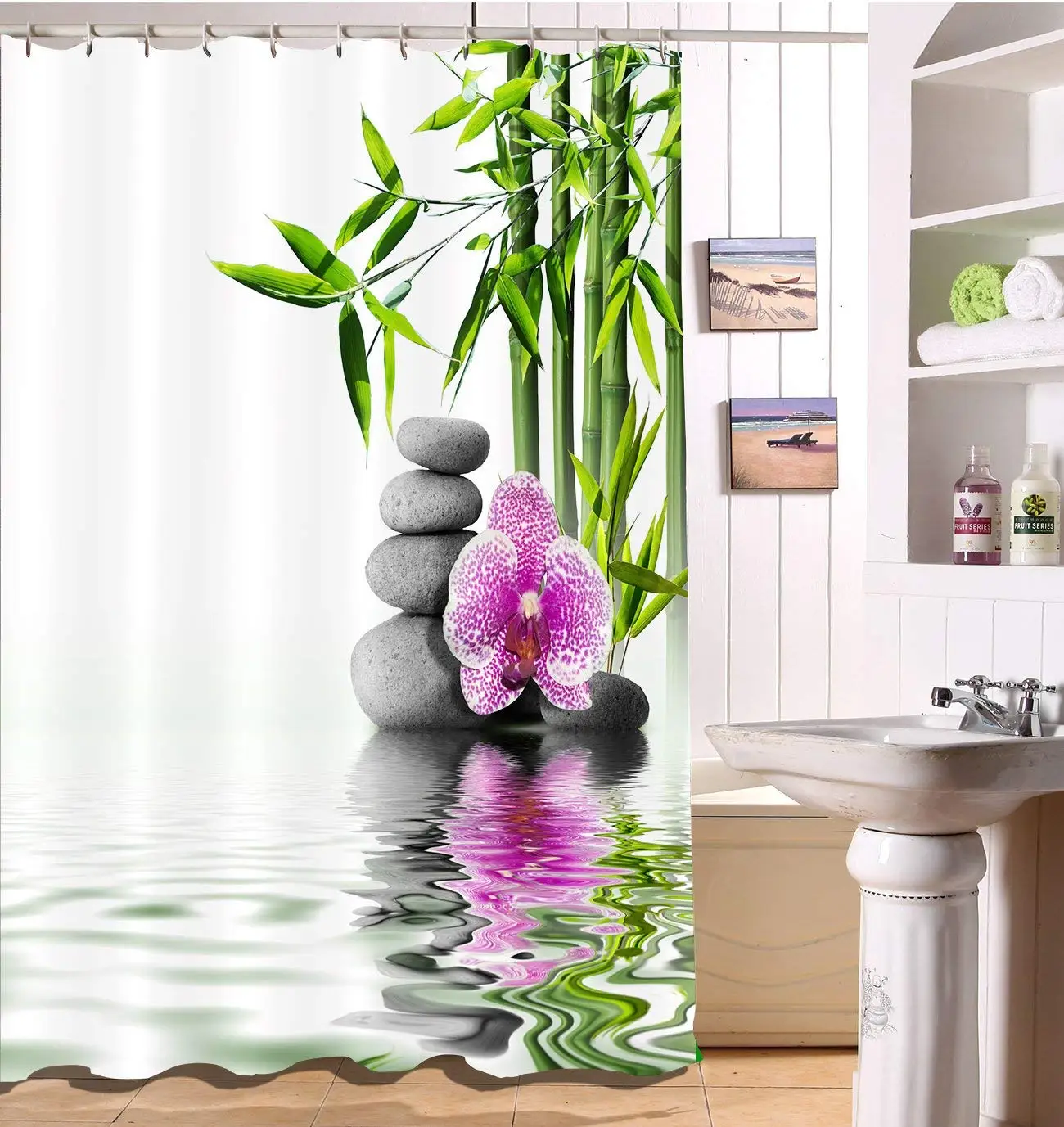 Занавеска для душа, из полиэстера, водонепроницаемая, с массажными камнями и орхидеями