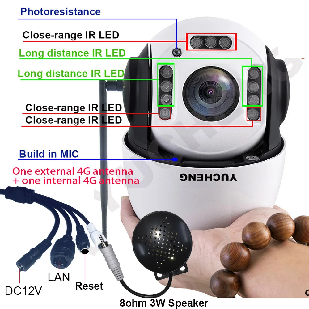 1x4G 5MP 4G Track PTZ IP-камера1x3 Вт динамик1X DC12V 3A адаптер питания1X руководство1x1 м сетевой кабель1X установочный комплект