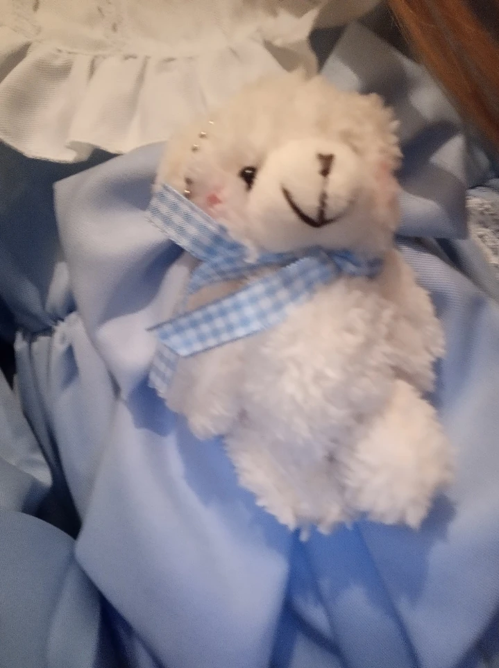 Платье само по себе очень милое, но бант на медведе намного меньше, чем на фотографии на складе