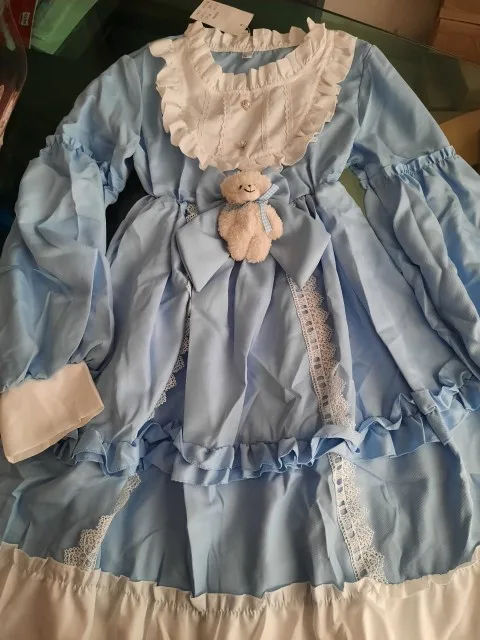 Я не могу быть более счастливым, если у меня будет это платье. Платье красивое и сшито идеально. Вам просто нужно шнуровать синюю ленту. Я так рад получить полное платье в парике и аксессуарах для этого. Буду покупать для них снова.