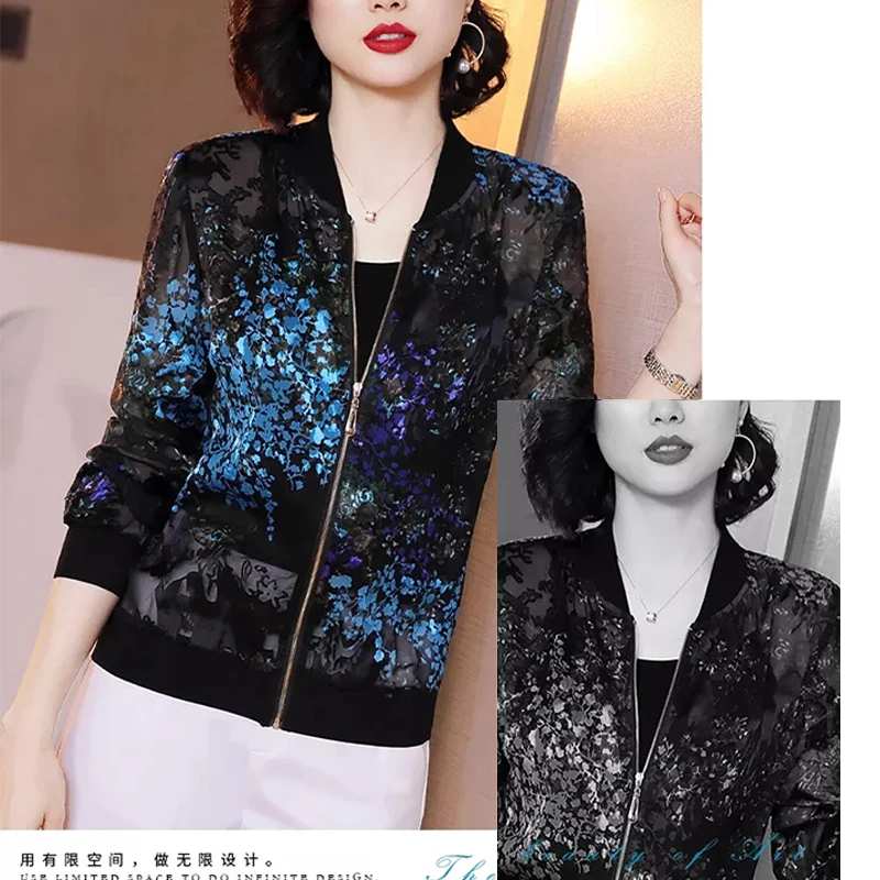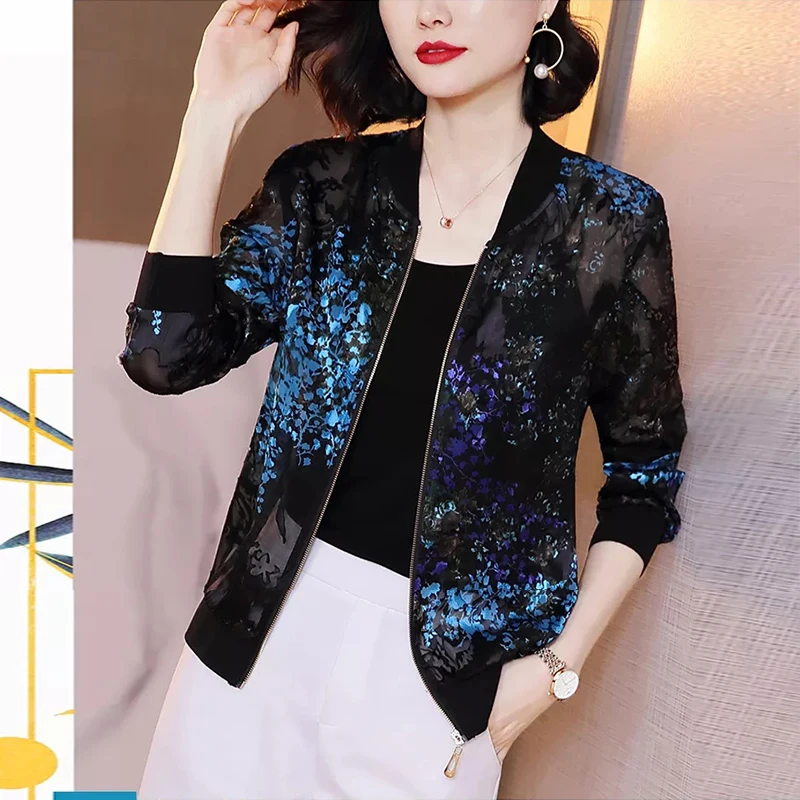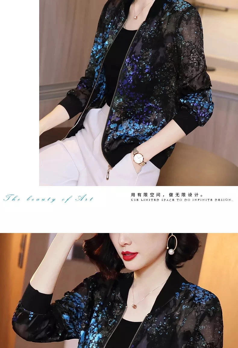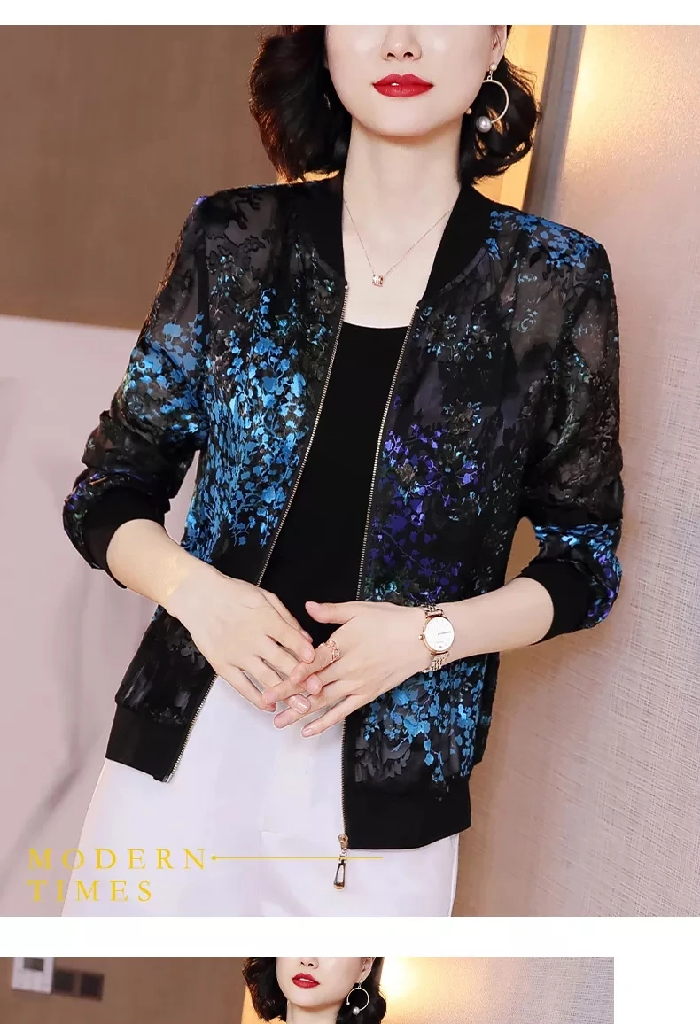 Куртка-бомбер женская летняя, с кружевным принтом, солнцезащитная, размера плюс