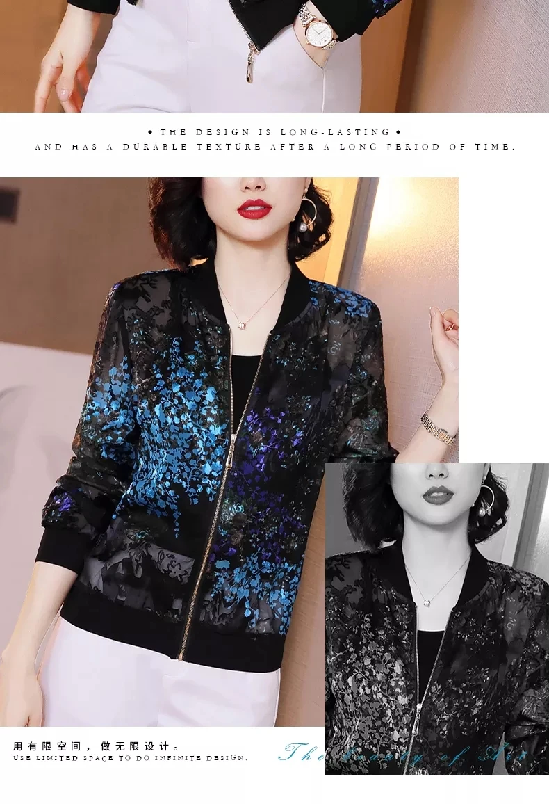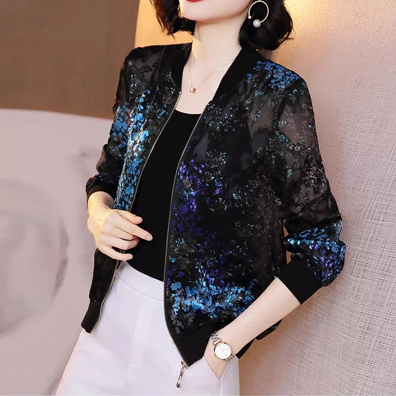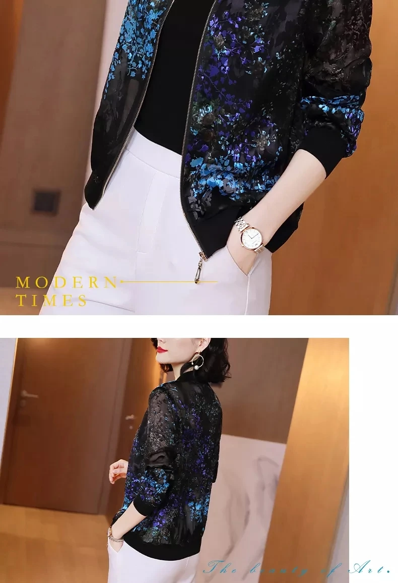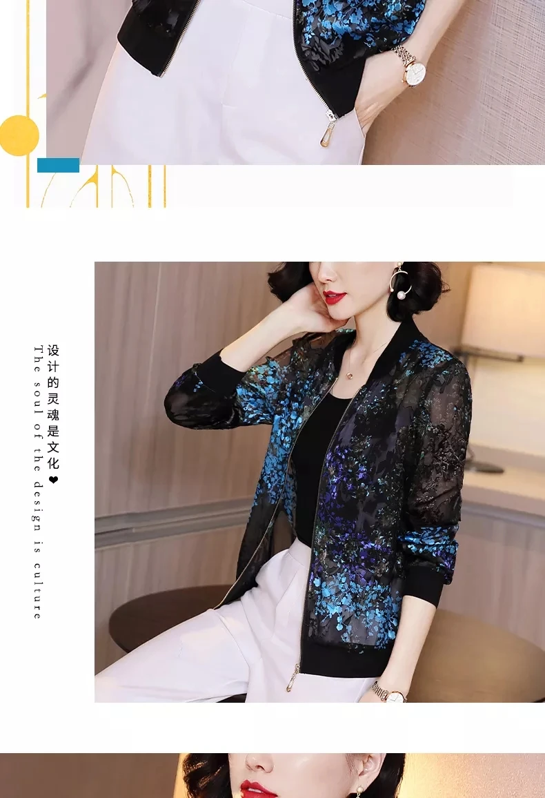 Куртка-бомбер женская летняя, с кружевным принтом, солнцезащитная, размера плюс
