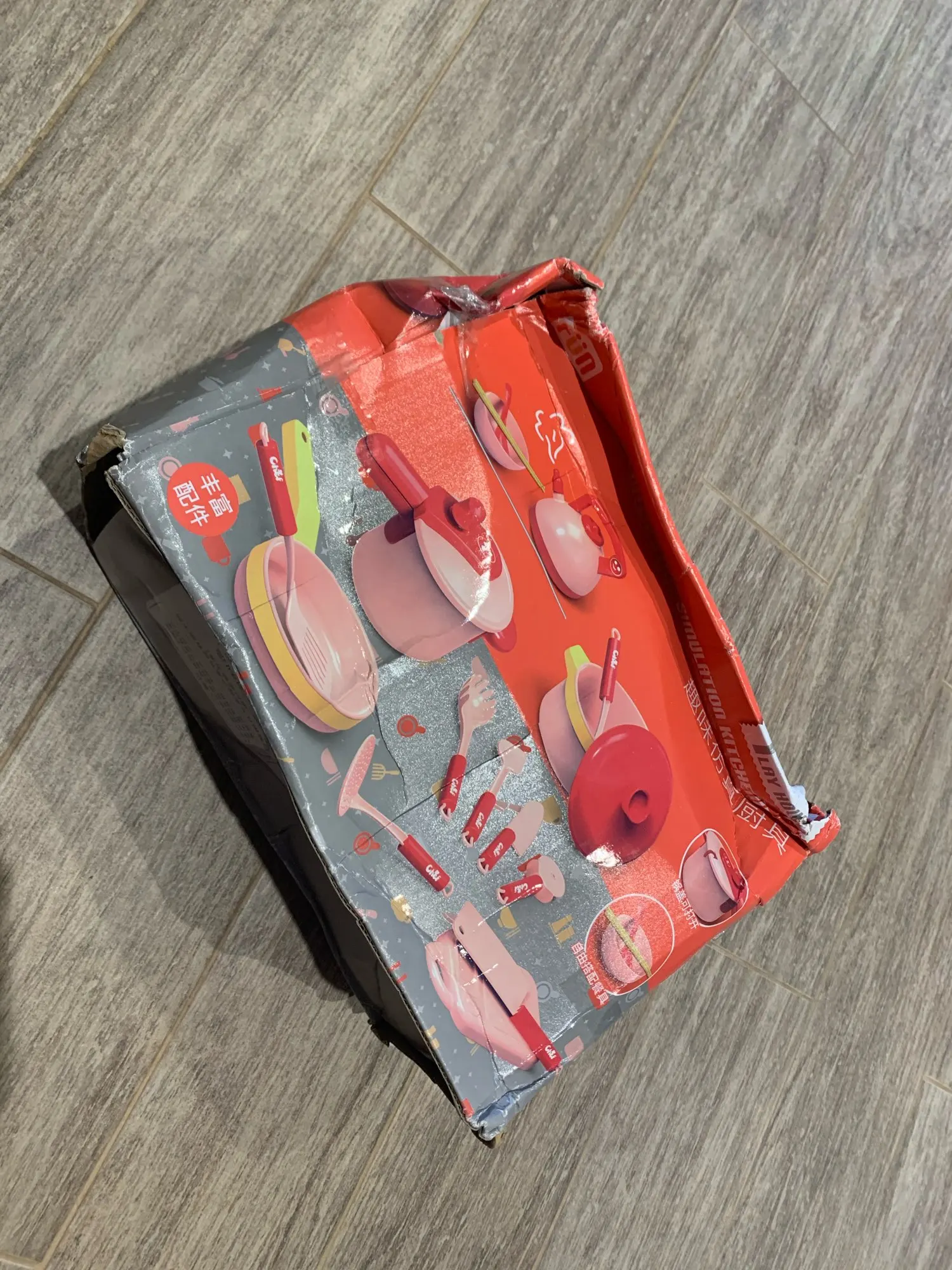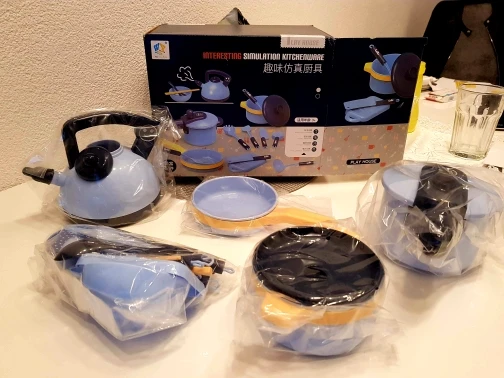 От заказа до прибытия на почту в мск посылка шла 23 дня, трек отслеживался. Посылку объединили с другими заказами. Упаковано в коробку и обычный почтовый пакет. Из-за этого коробка была всмятку. Чудом все детали целые. Запаха нет, трещин и повреждений нет, комплект пришёл полный как и заявлено у продавца. Дочке 3 года и от посуды она в полном восторге. Рекомендую!!!