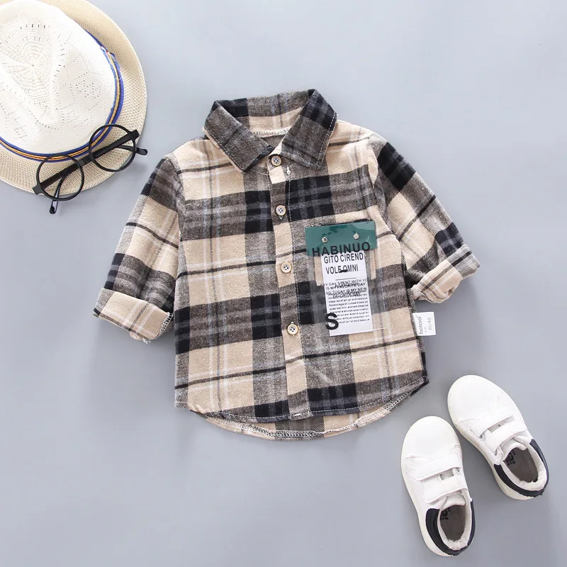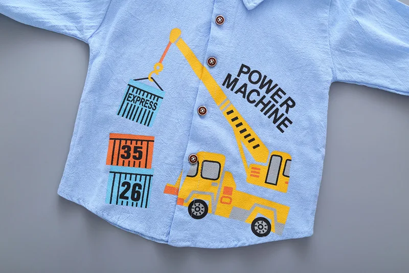 DIIMUUвесенне-осенние ребенок Мальчики хлопковые рубашки Детские топы для мальчиков одежда с отложным воротником и мультяшным принтом