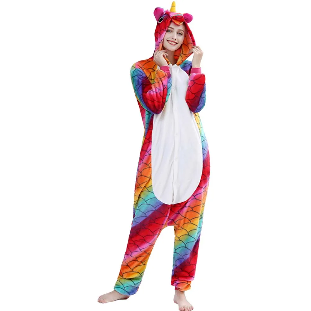 Зимняя Пижама унисекс для женщин и мужчин 2020, фланелевая ночная рубашка с единорогом