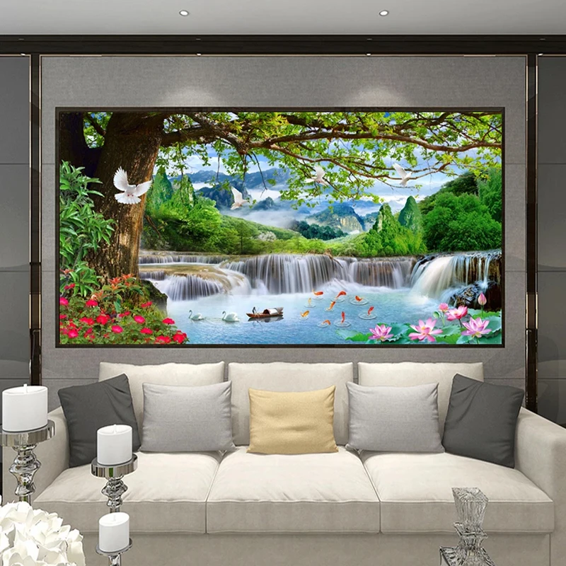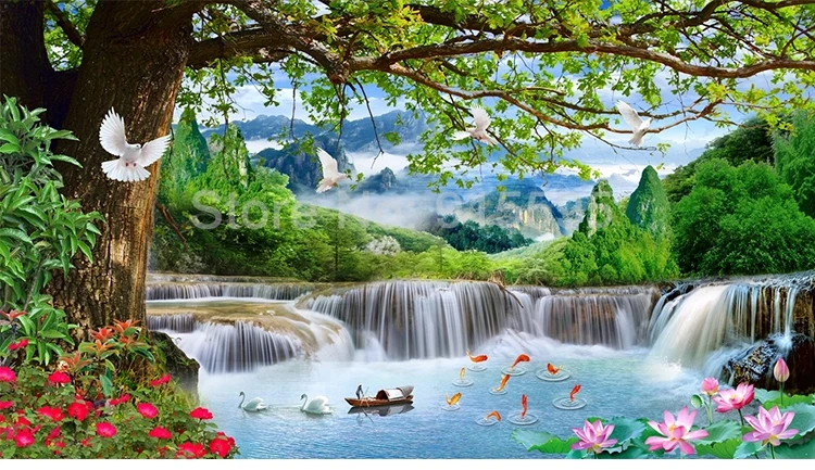 Настенная роспись на заказ, большой зеленый лес, водопад, природа, пейзаж, 3D плакат, фотообои для спальни, гостиной, фон