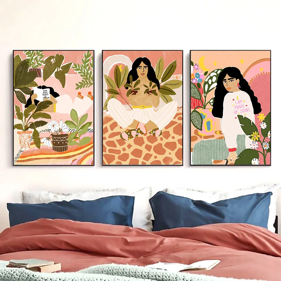Винтажные постеры в стиле бохо с марокканской бежевой девушкой и со...