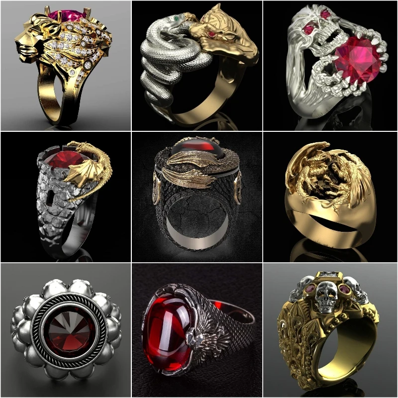 Винтажные кольца в стиле панк с изображением сухого дракона злого дракона для мужчин, готические металлические двухцветные рандомные ювелирные изделия в стиле стимпанк для женщин и мужчин Z4M520