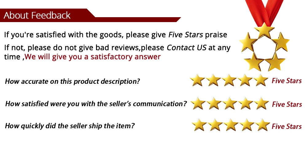 4. Мы должны с удовольствием помочь им решить любую проблему, пожалуйста, свяжитесь с нами, прежде чем оставлять нам отрицательные отзывы.