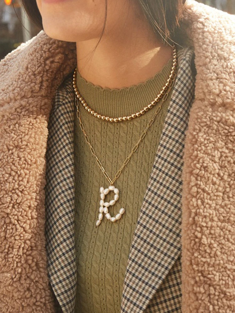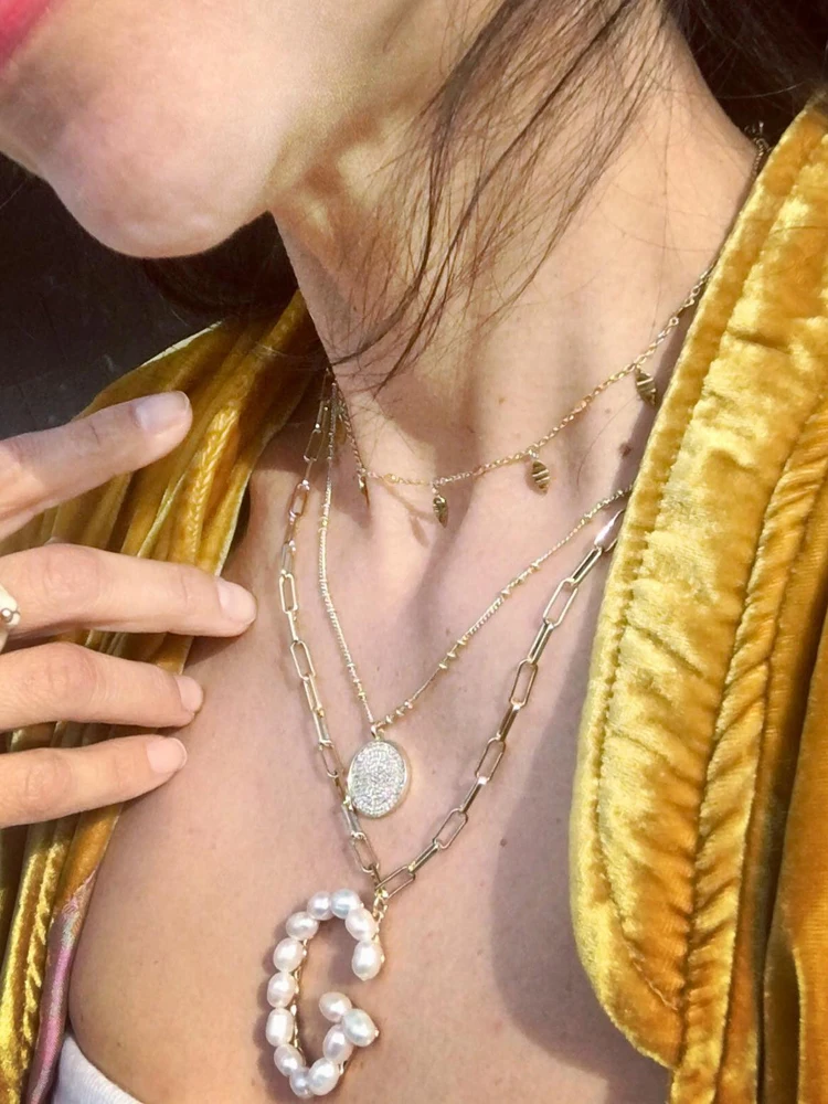 Ожерелье-цепочка женское, с пресноводным жемчугом