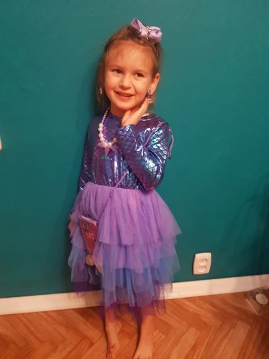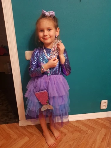 Набор очаровательный!!! Очень классный! Вот только ехал уж очень долго, и получили после Нового года через неделю.. все праздники прошли. Одевали платье русалки без аксессуаров.