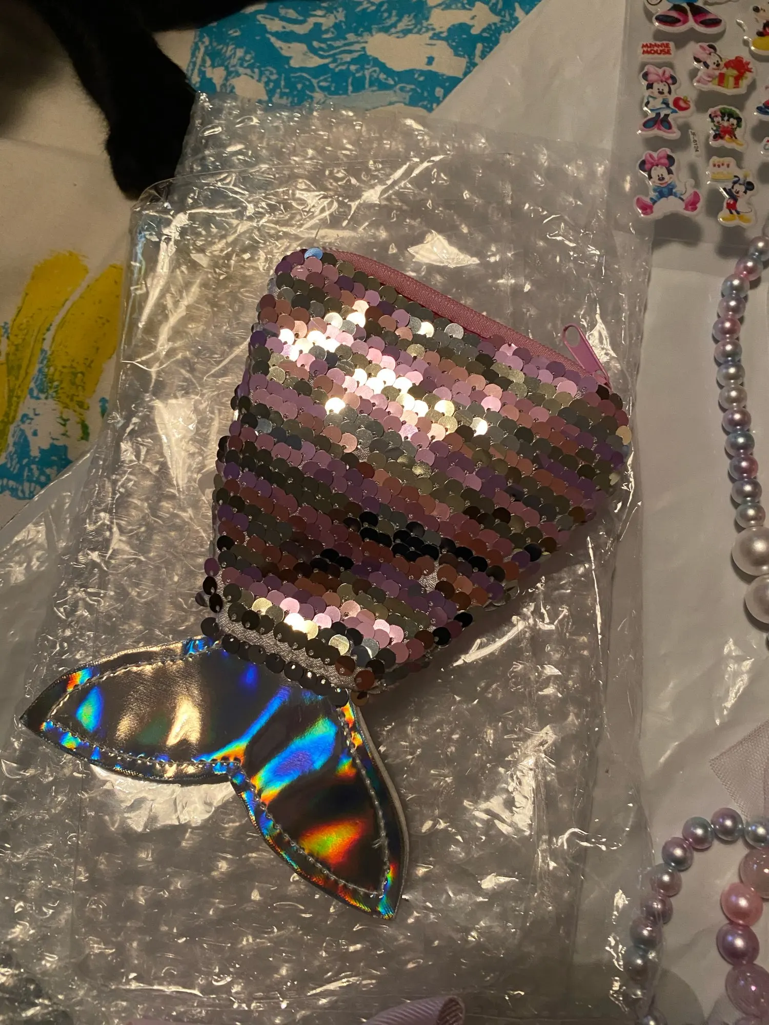 is really cute, the colors are the same as the photo, is small, and came smelling a little bit like plastic, it take 1 month to arrive to USA, this a birth day present for my daughter sure she will love it, the bag is really small and you only can fix inside the jewelry and that it. and back side of the bag don't have sequences like in the front but have some soft material. came well wrap and with some stickers, thanks I'm so happy with my item :) I recommend it