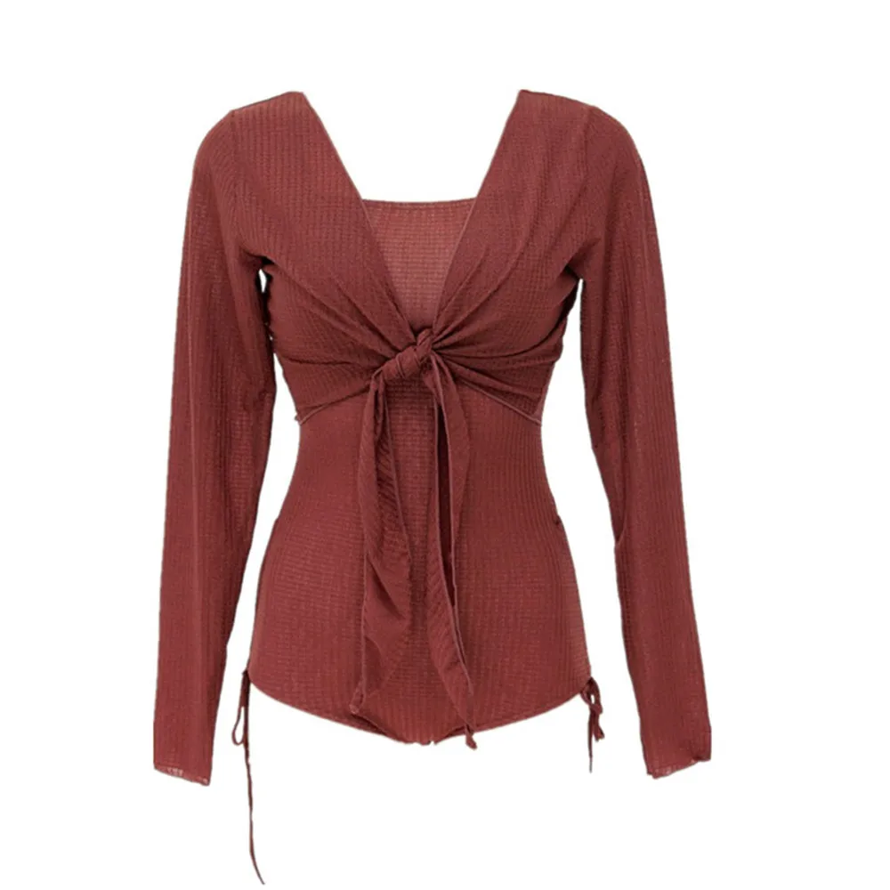 Женский сплошной купальник с длинным рукавом и V-образным вырезом
