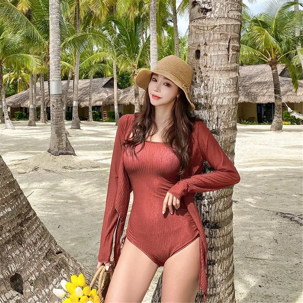Женский слитный купальник с длинным рукавом, Цельный купальник на м...