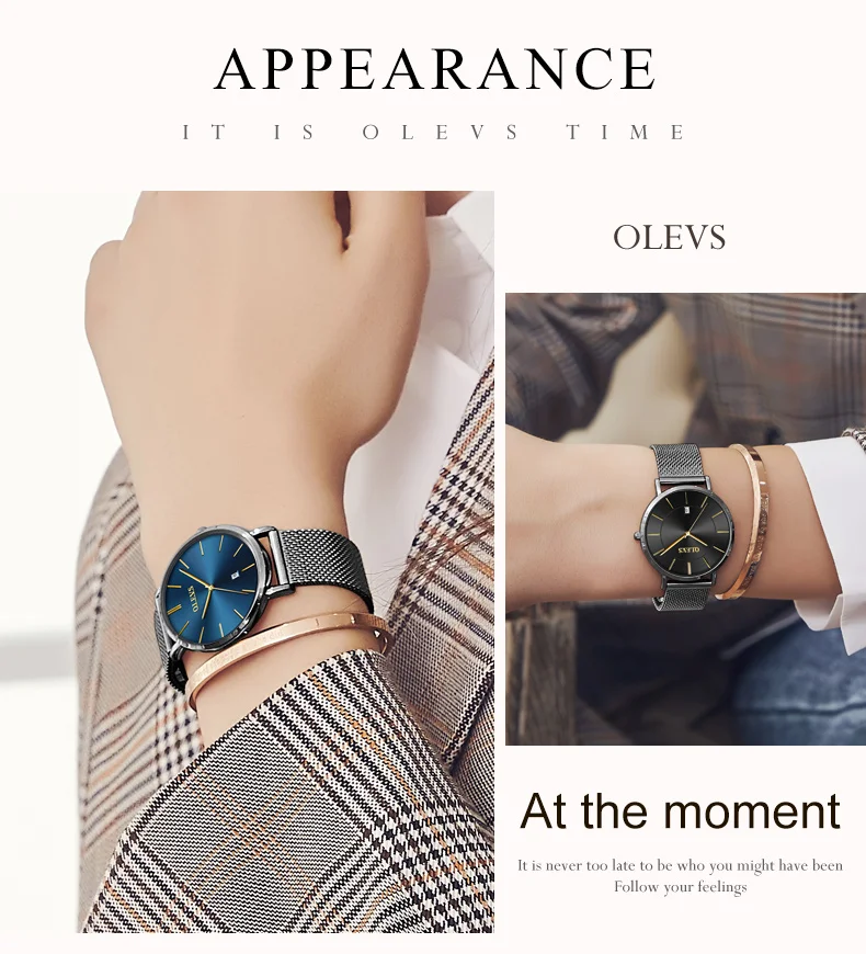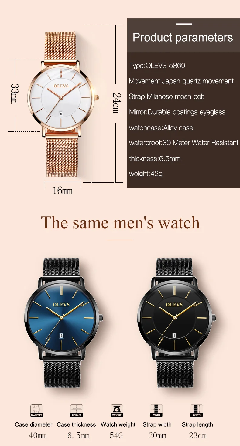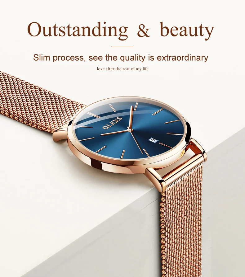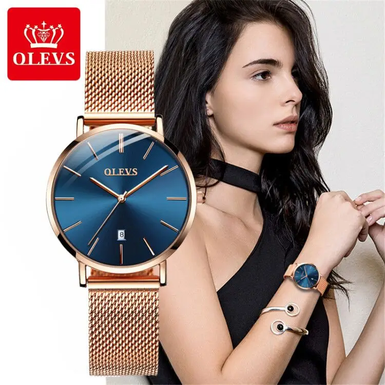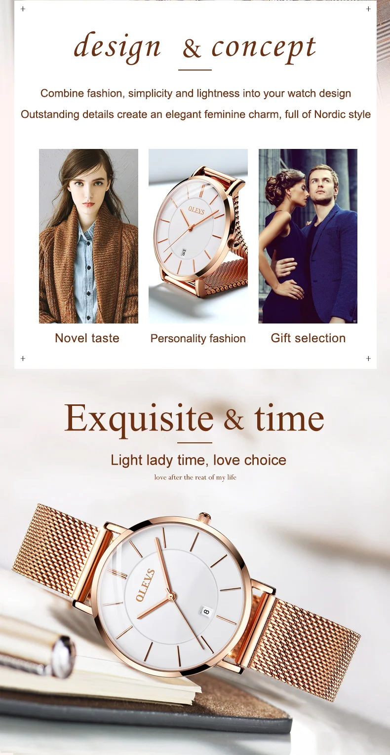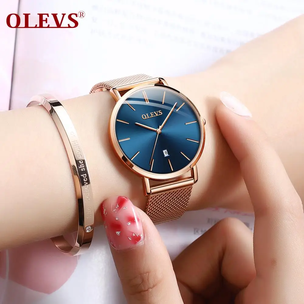Часы OLEVS женские из розового золота, брендовые роскошные японские часы, кварцевые ультратонкие женские часы с календарем