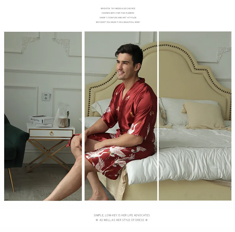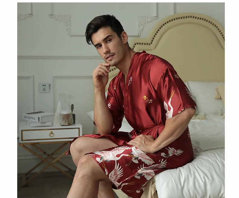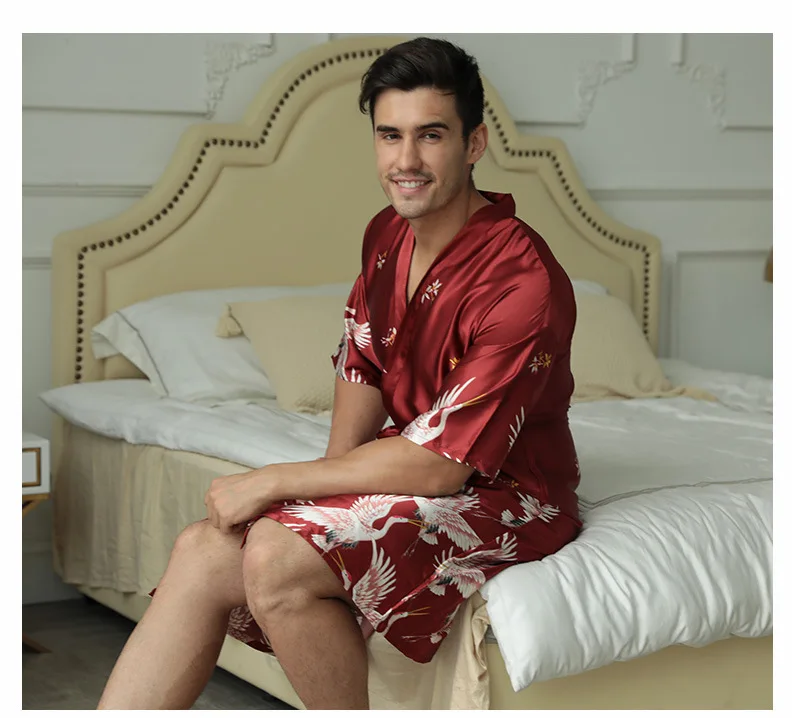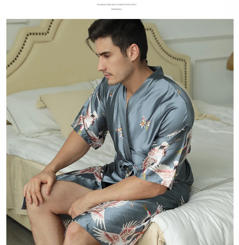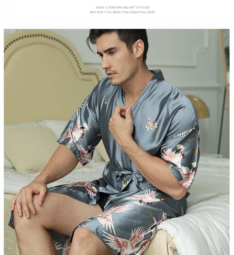 Негабаритных 3XL Для мужчин халат летнее атласное платье с принтом,...