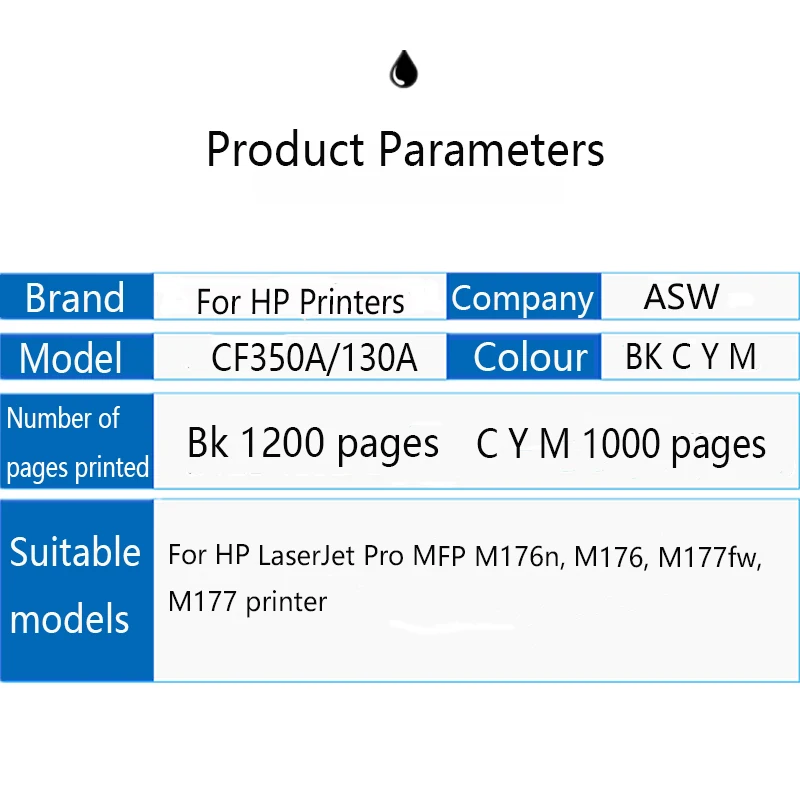 Картриджи с тонером ASW CF350A, 350A, CF351A, CF352A, CF353A, 130A, совместимы с hp Color LaserJet Pro MFP M176n, M176, M177fw, M177