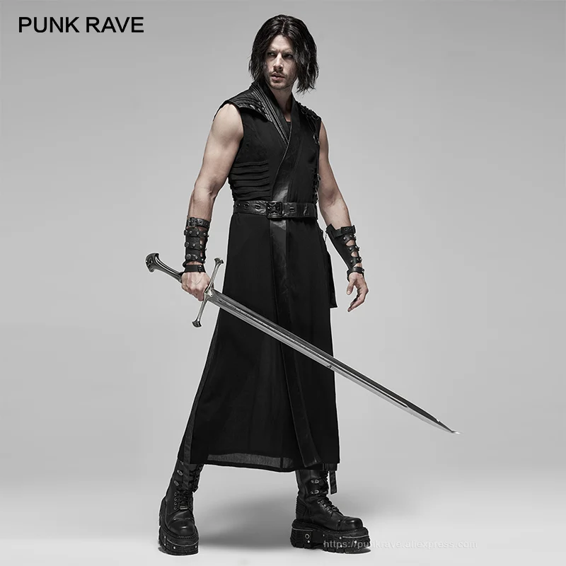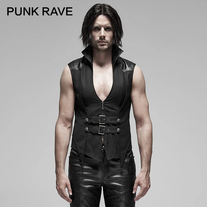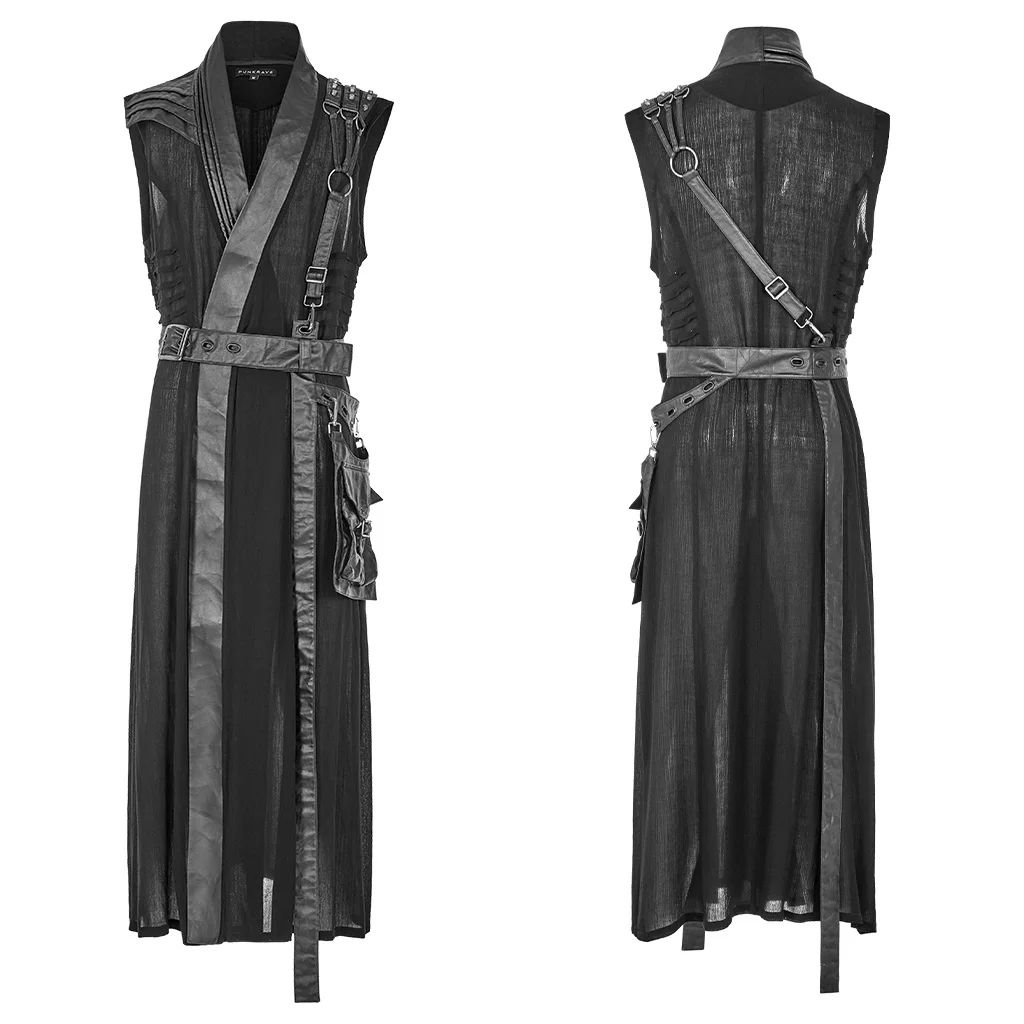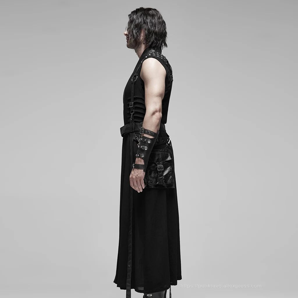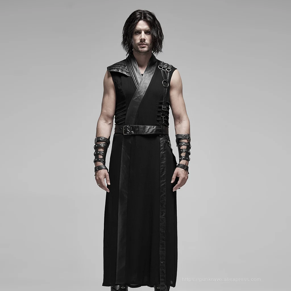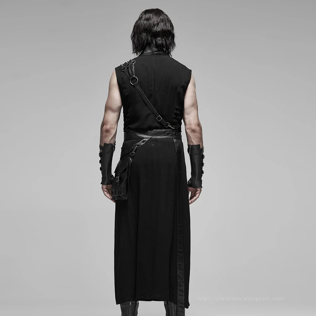 Мужской ассиметричный Длинный жилет в стиле панк-рейв, из искусственной кожи