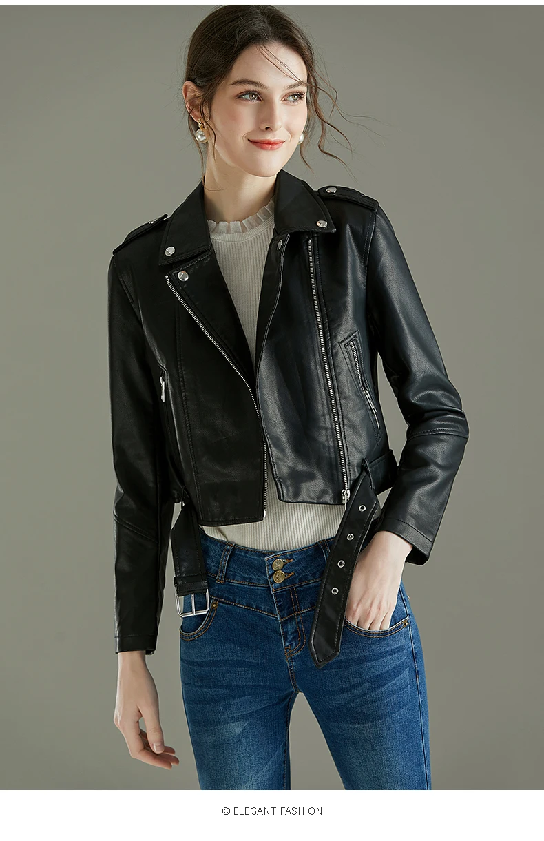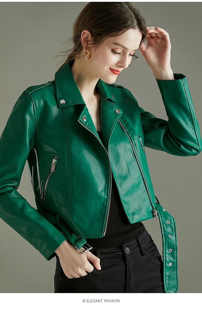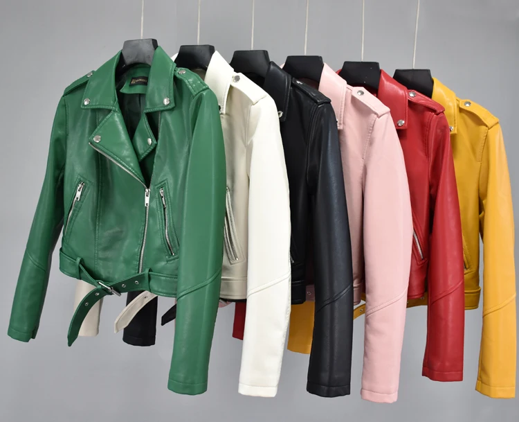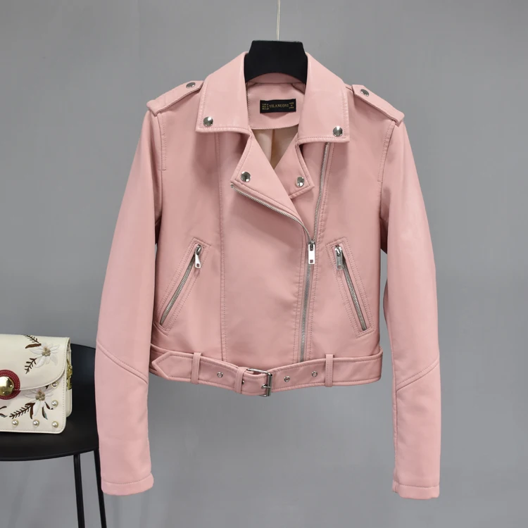 Женская куртка-бомбер из искусственной кожи, байкерская куртка розового, желтого и черного цветов с ремнем, верхняя одежда, 2021