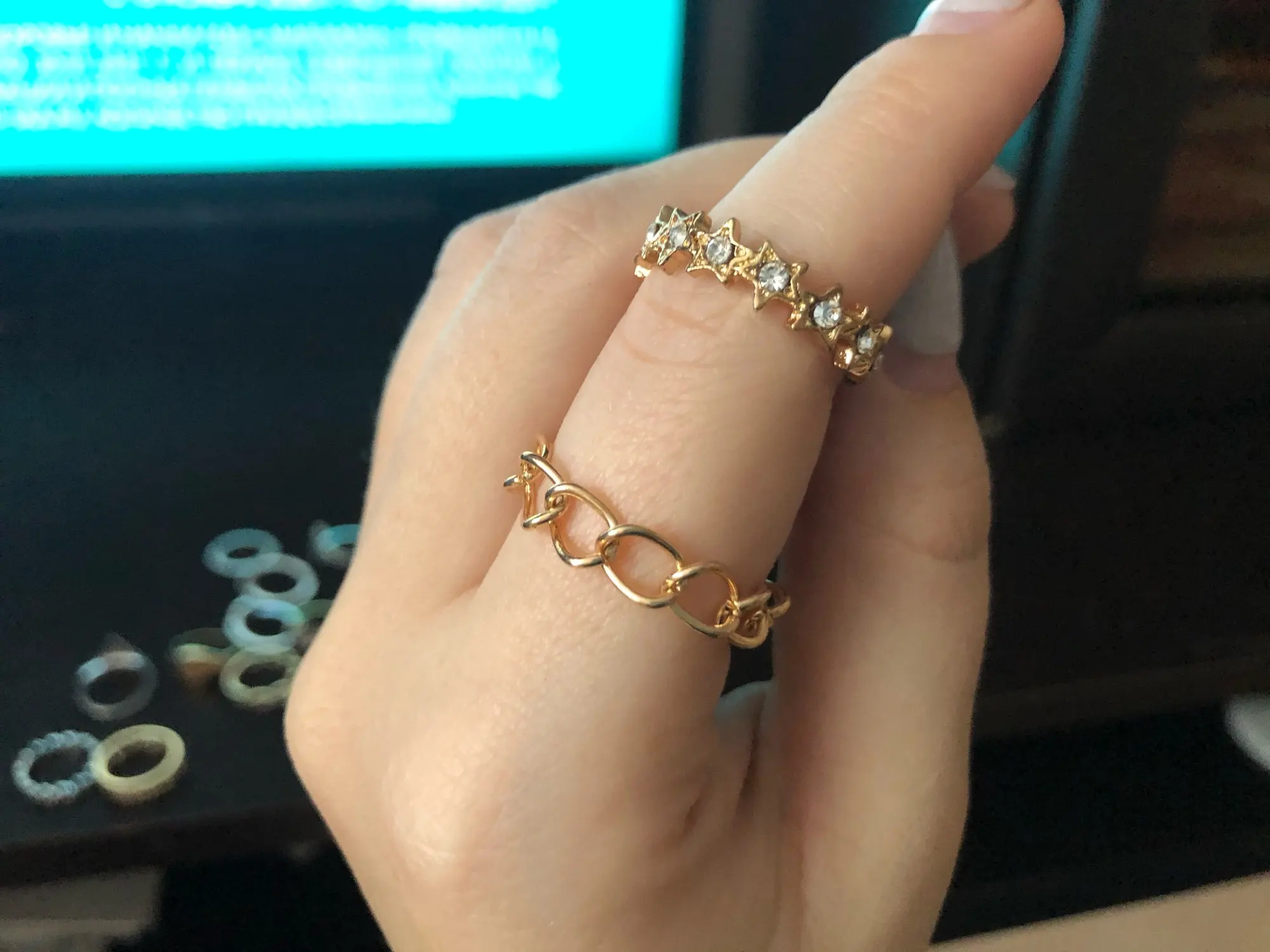 Кольца очень маленькие, нужны очень тонкие пальцы чтобы надеть их как на фото