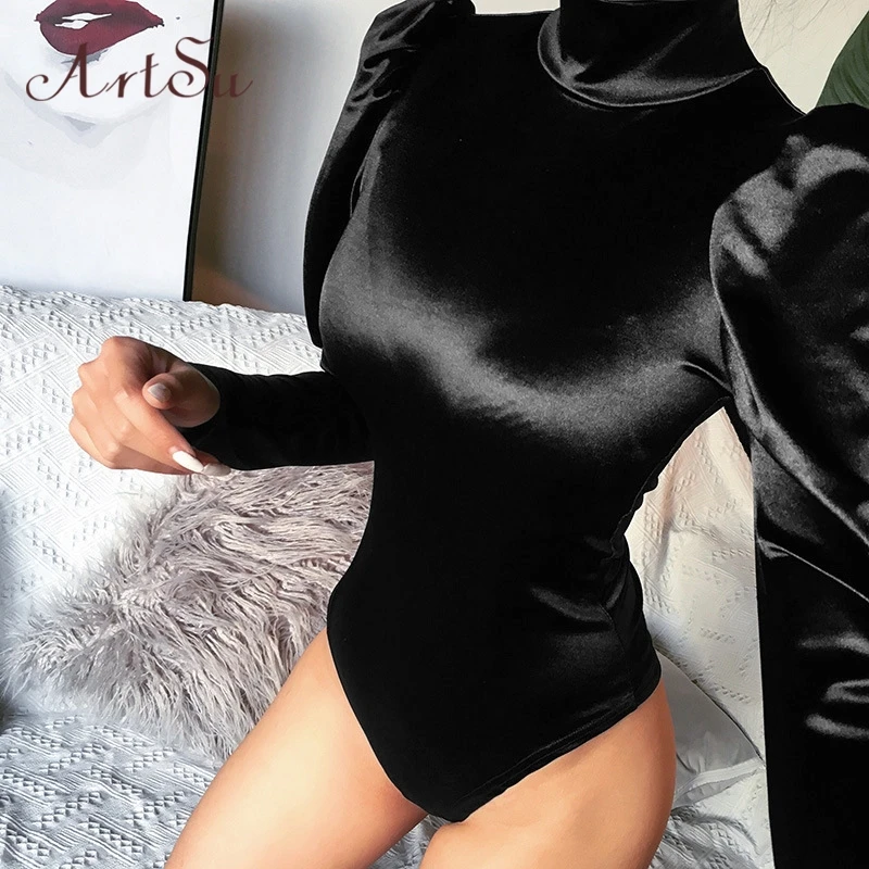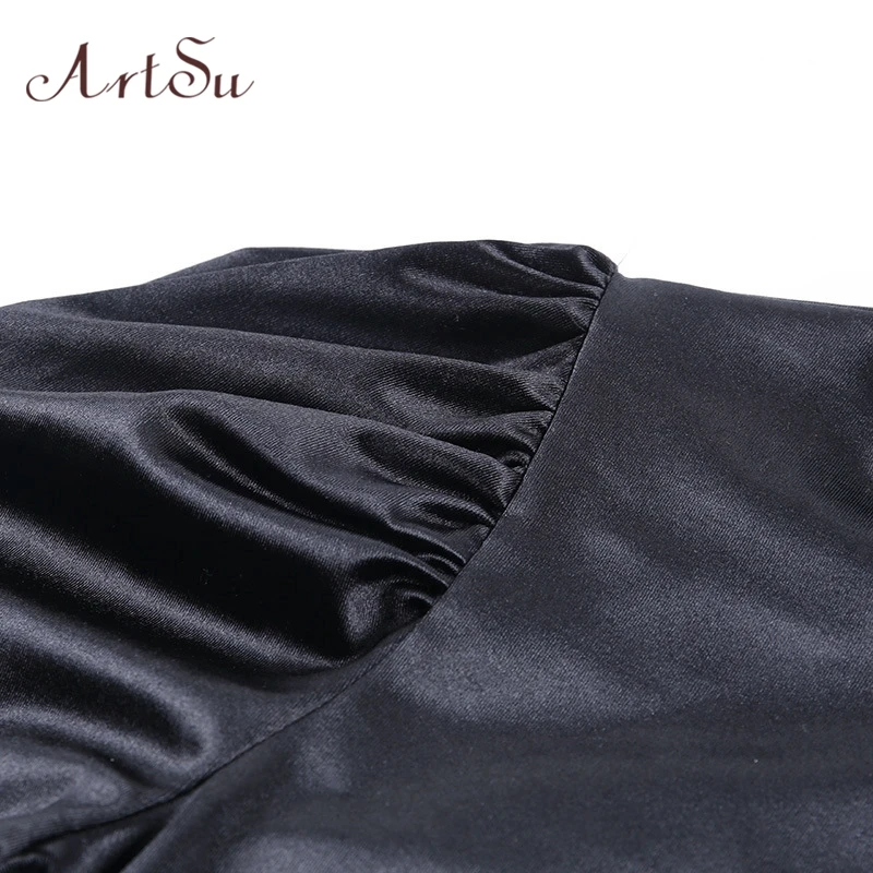 Женский комбидресс Artsu, черная блузка с высоким воротником, с длинными пышными рукавами, короткий комбидресс Вечерние