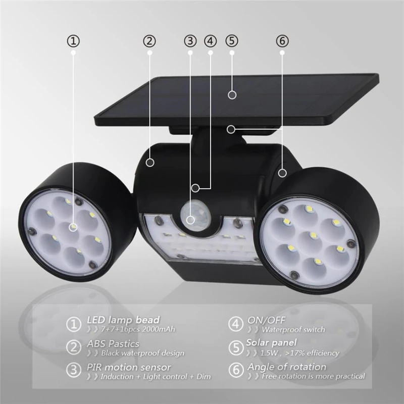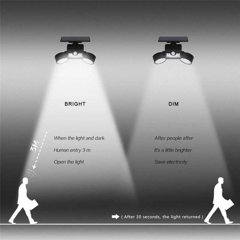 Открытый 30 светодиодный настенный светильник на солнечных батареях PIR датчик движения огни IP65 Водонепроницаемый двойной головной Регулируемый патио гараж садовая лестница