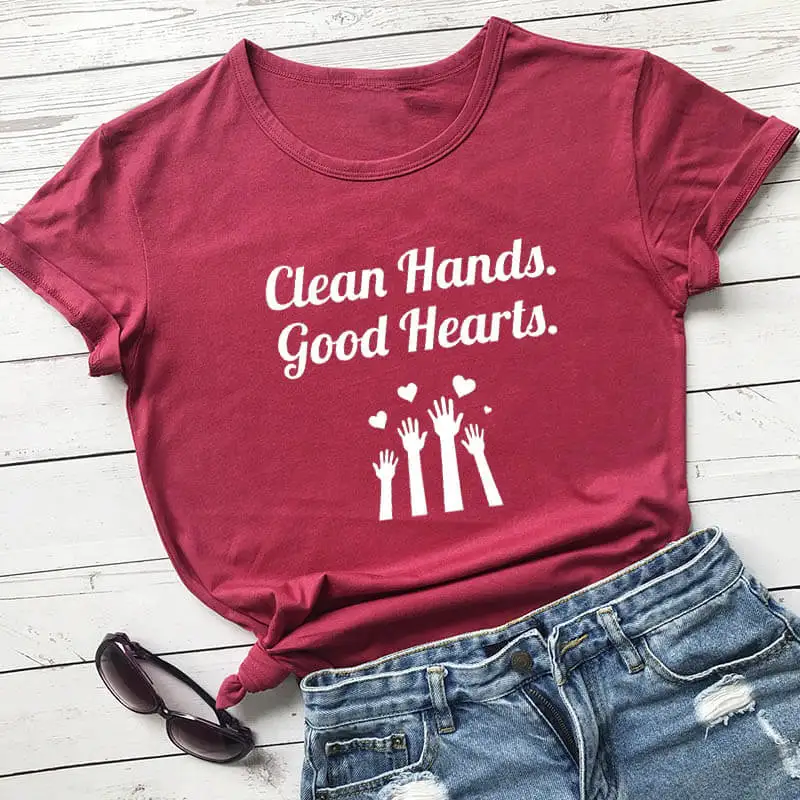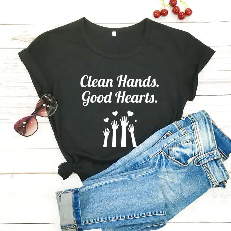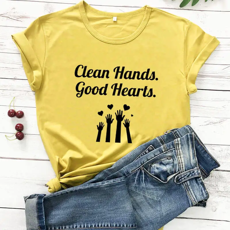 Рубашки Clean Hands Good Hearts, футболки Stay At Home, Новое поступление, 2020 хлопок, забавная футболка, футболки с защитой от людей