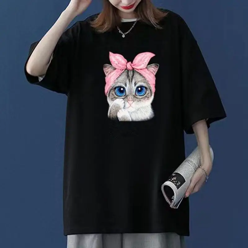 Женская летняя футболка с круглым вырезом и коротким рукавом, размеры до 150 кг
