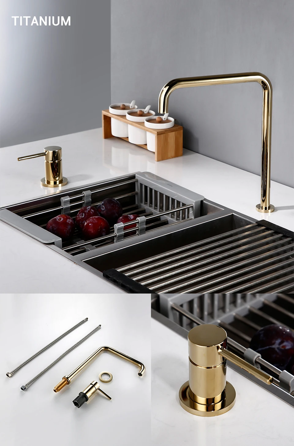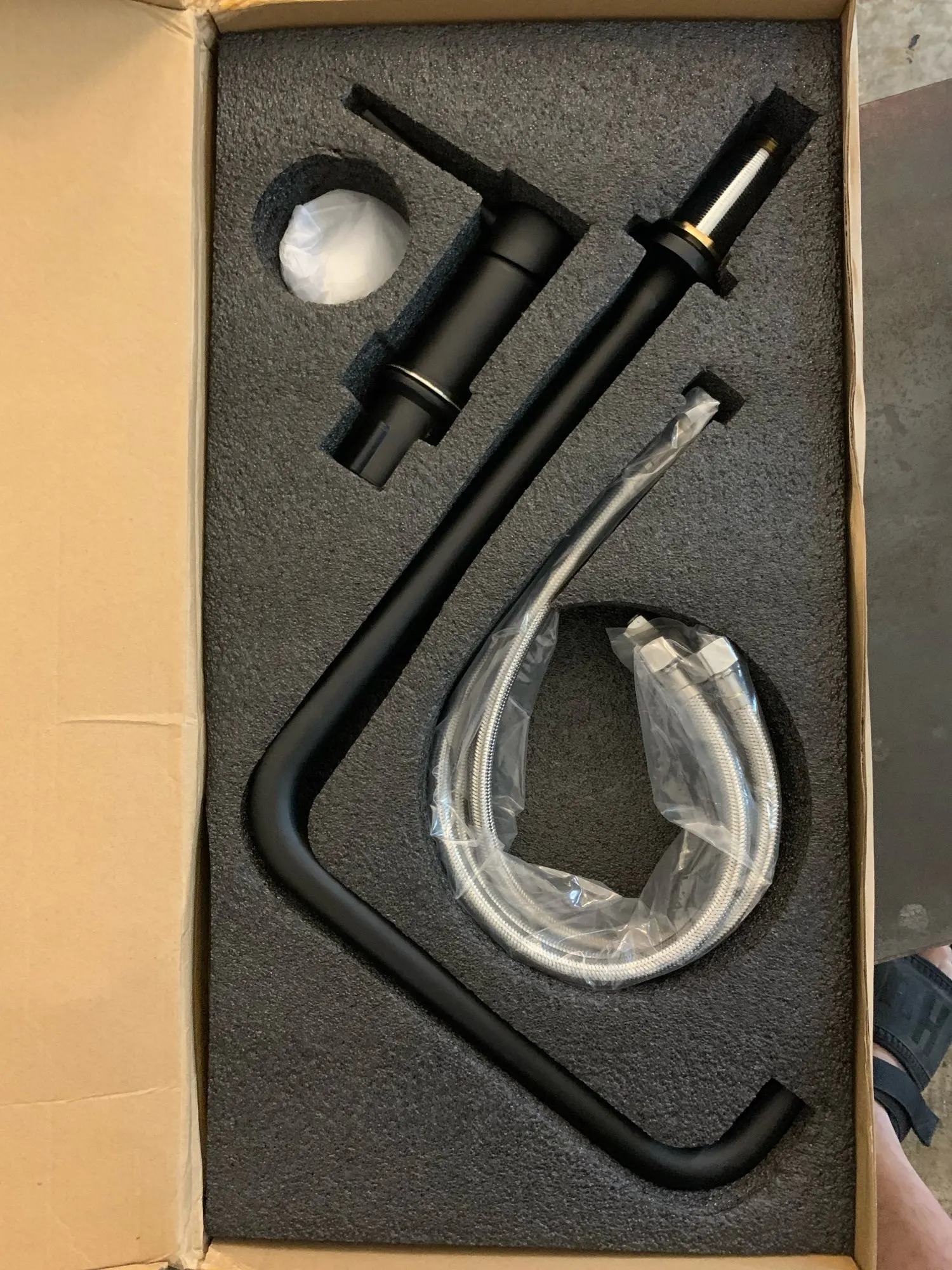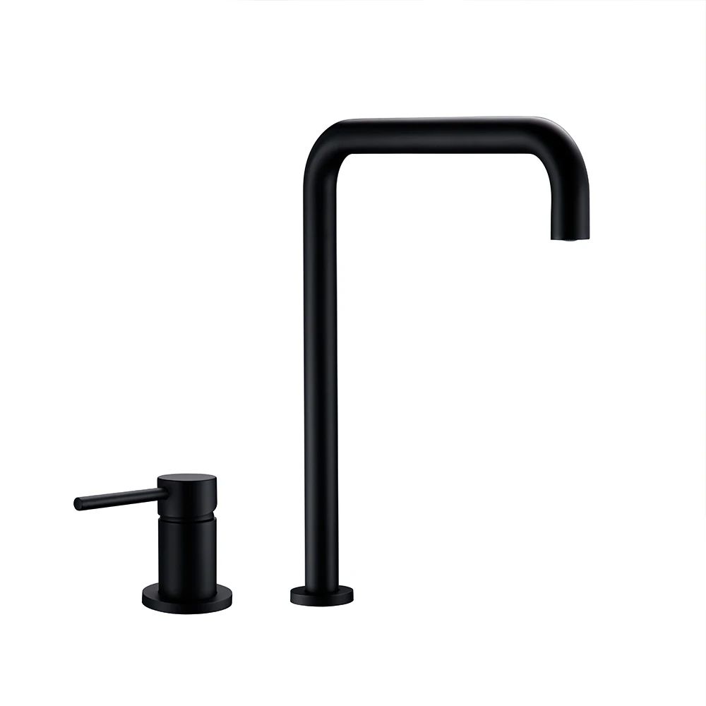 Смеситель для кухни Smesiteli, вращающийся на 360 градусов, из твердой латуни, с двойным отверстием, одна ручка, матовый черный L-образный, кухонный смеситель для умывальника
