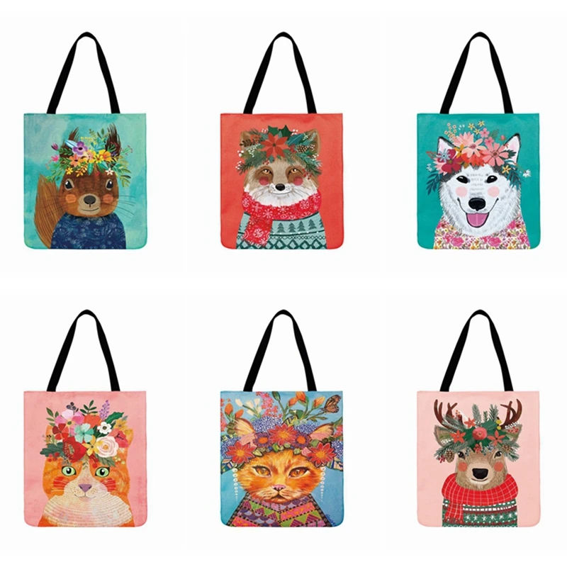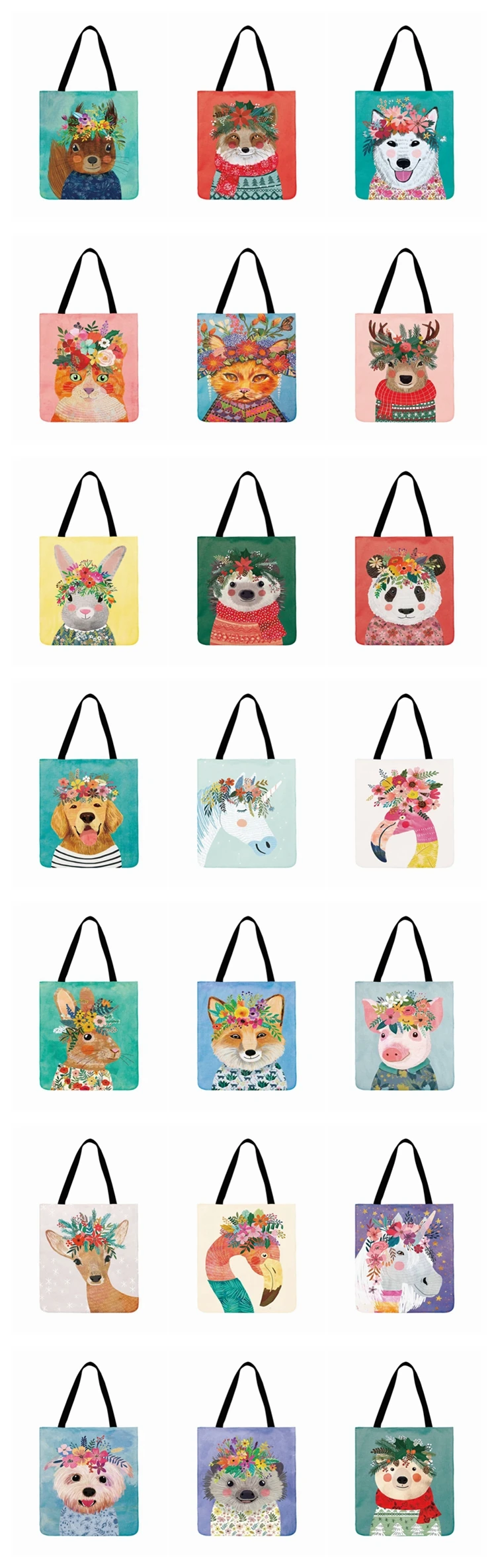 Сумка-тоут женская, с принтом животных и цветов, складная