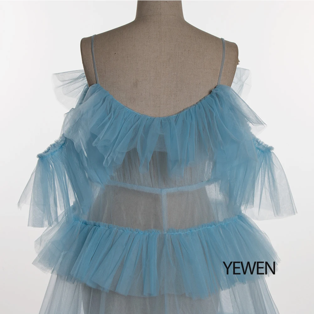 Платье для беременных из тюля с оборками синего павлина платье для ...