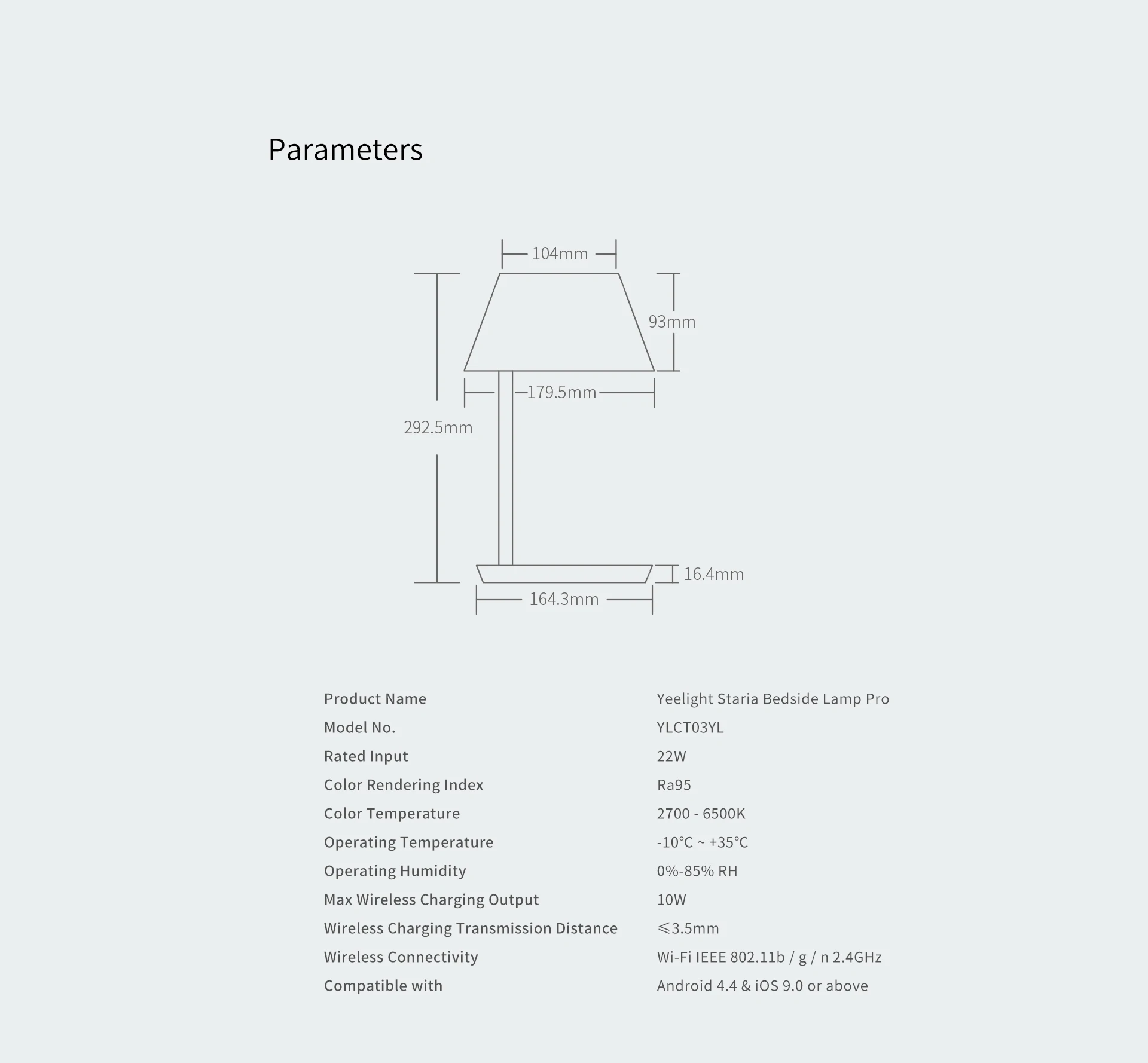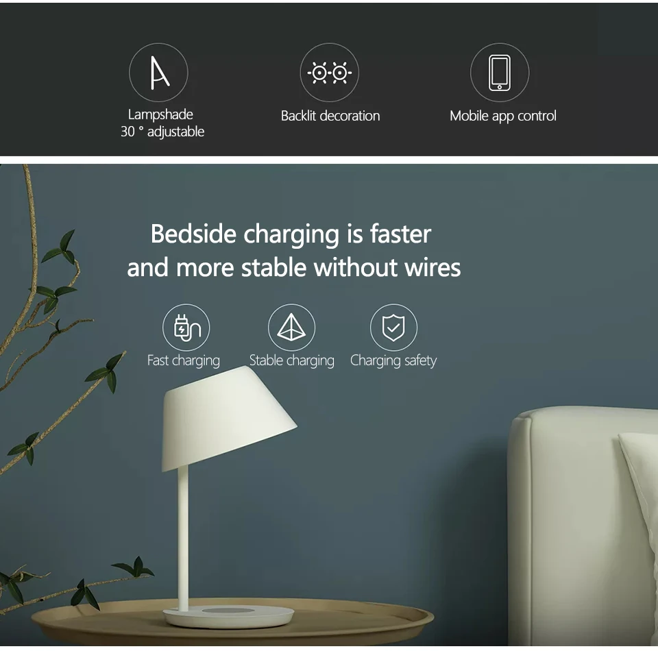Yeelight YLCT03YL прикроватная лампа умная WiFi сенсорная диммируемая светодиодная беспроводная зарядка для внутреннего освещения для iPhoneСпецификация:Модель: YLCT03YL (профессиональная версия)Тип изделия: настольная лампа PROБренд: YeelightМодель: YLCT03YLВход: AC100-240V 50-60 Гц 0.35AВыход: Макс. 14 ВтМощность: 18 ВтCRI: Ra95Материал тени: АБС-пластикСветильник источник света: светодиодныйСветильник; Цвет: теплый белый, белыйЦветовая температура: 2700-6500KТип переключателя: сенсорныйБеспроводной подключение: беспроводной стандарт IEEE 802,11 b/g/n 2,4 ГГцСистема поддержки: Android 4,4 или iOS 9,0 и вышеХарактеристики:Простой, эстетичный и практичный дизайн.Абажур может быть отрегулировано по температуре не более 30 градусов и задняя светильник ing может достичь форма светильник-излучающие эффект95Ra, эффективно устраняет визуальное воздействие низкого цветопередачиЦветовая температура поддержка 2700K - 6500K, плавная регулировка, от теплого желтого до холодного белого светильник для вас и семьи специфический светильник ing effect.Поддержка управления приложениями, интеллектуальное Голосовое управление.Работает с Homekit, mijia.Примечание:Только профессиональная версия (YLCT03YL) имеет функцию беспроводной быстрой зарядки.Совместимые модели:Смартфоны с поддержкой быстрой зарядки и беспроводной зарядкиТакие как: Iphone8, iPhone8 plus, iphonexПосылка:1 х LEDYLCT03YL Настольный светильник1 х штепсельная вилка европейского стандарта