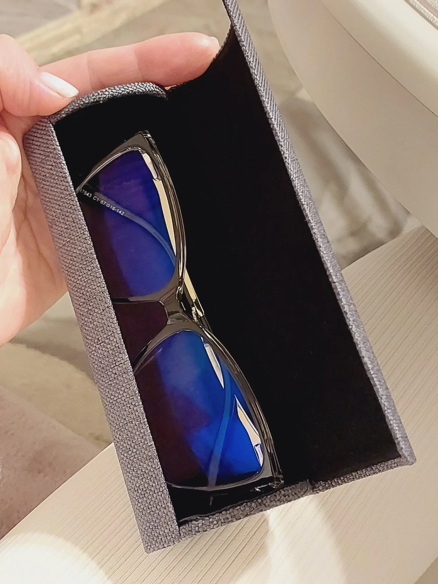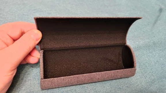 Футляр ткань,цвет,как и на фото у продавца,с ним не общалась,отправил быстро ,пришел в Питер на 1,5 недели раньше.Очки(конкретно мои),как карандаш в стакане болтаются,подойдёт и на белее крупную оправу(у меня тонкий метелл),сделан аккуратно.У меня к данному товару претензий нет.