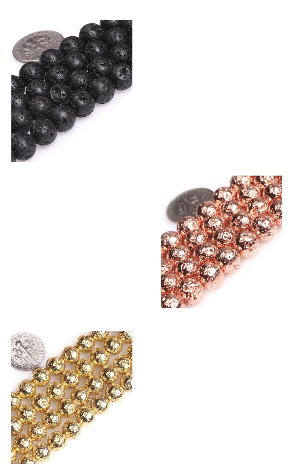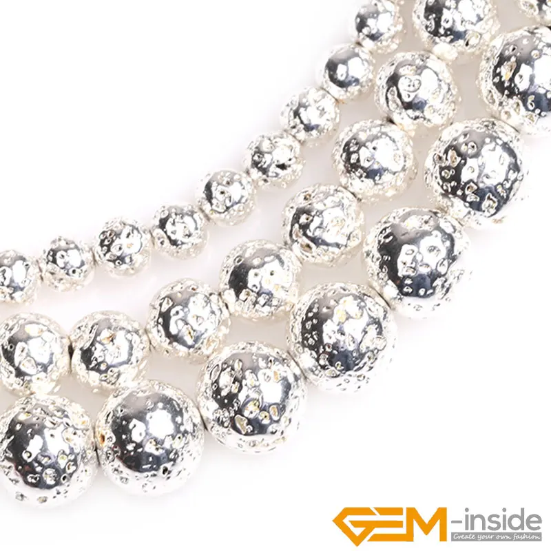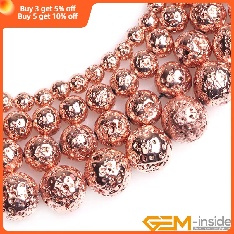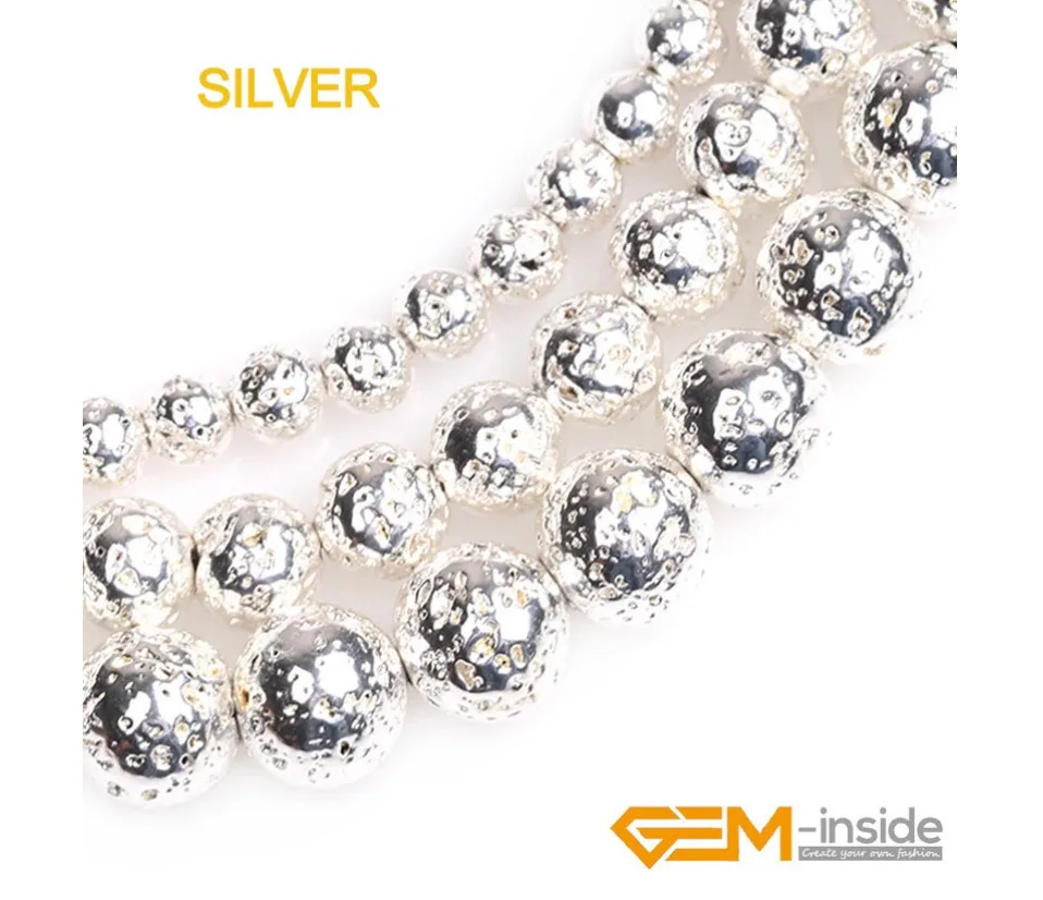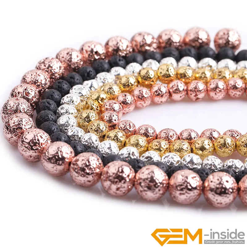 Черные, розовые, золотые, натуральный серебристый цвет из лавового камня, круглые, вулканические, свободные бусины для изготовления ювелирных украшений, нитка 15 дюймов, рукоделие ювелирные бусины
