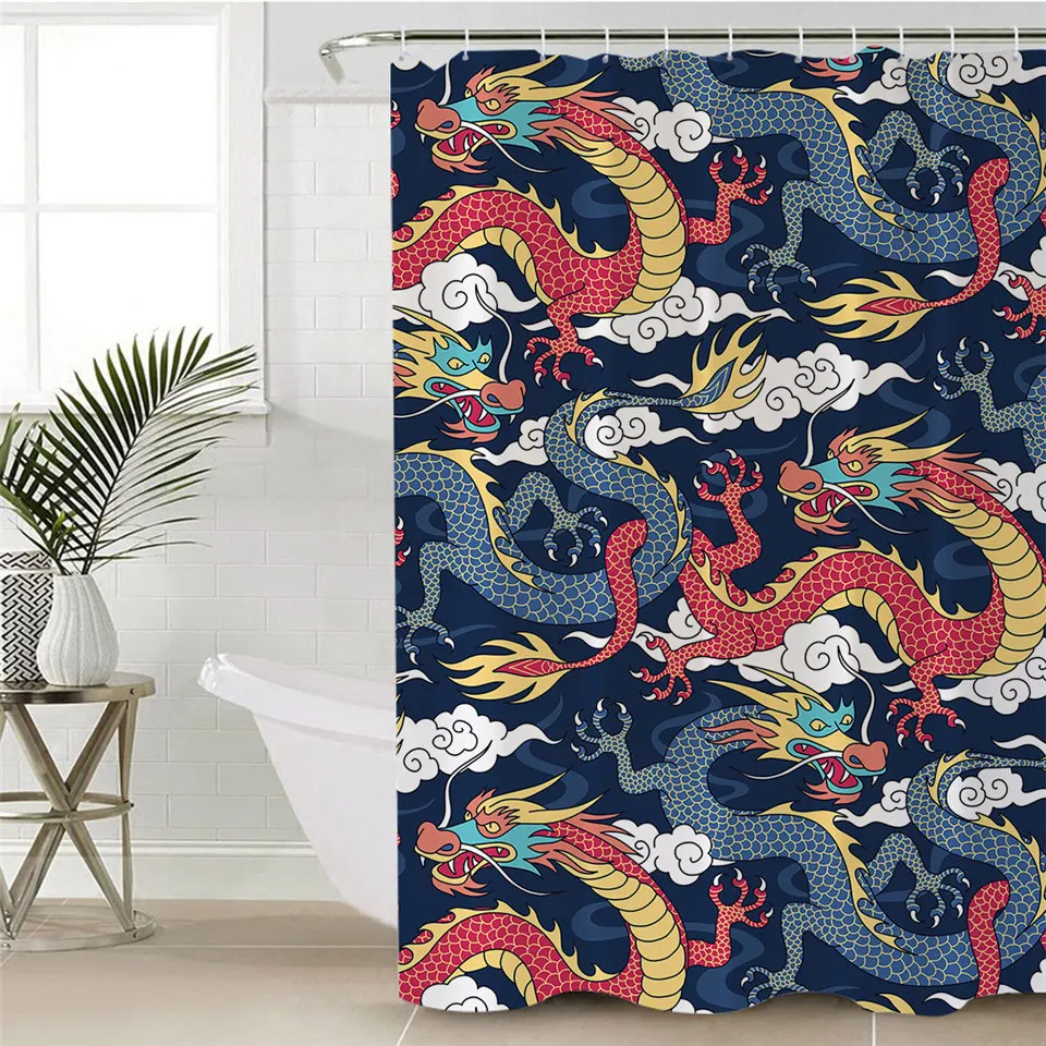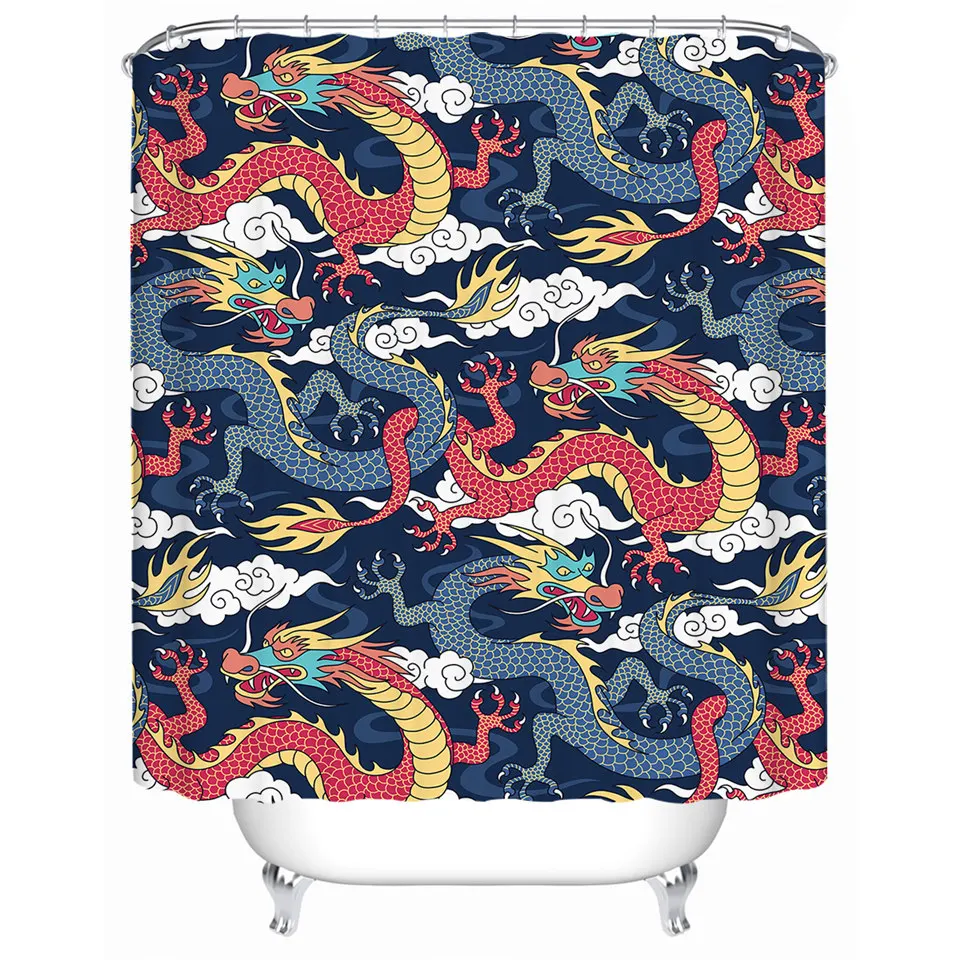 Водонепроницаемая занавеска для душа BeddingOutlet с изображением красного дракона