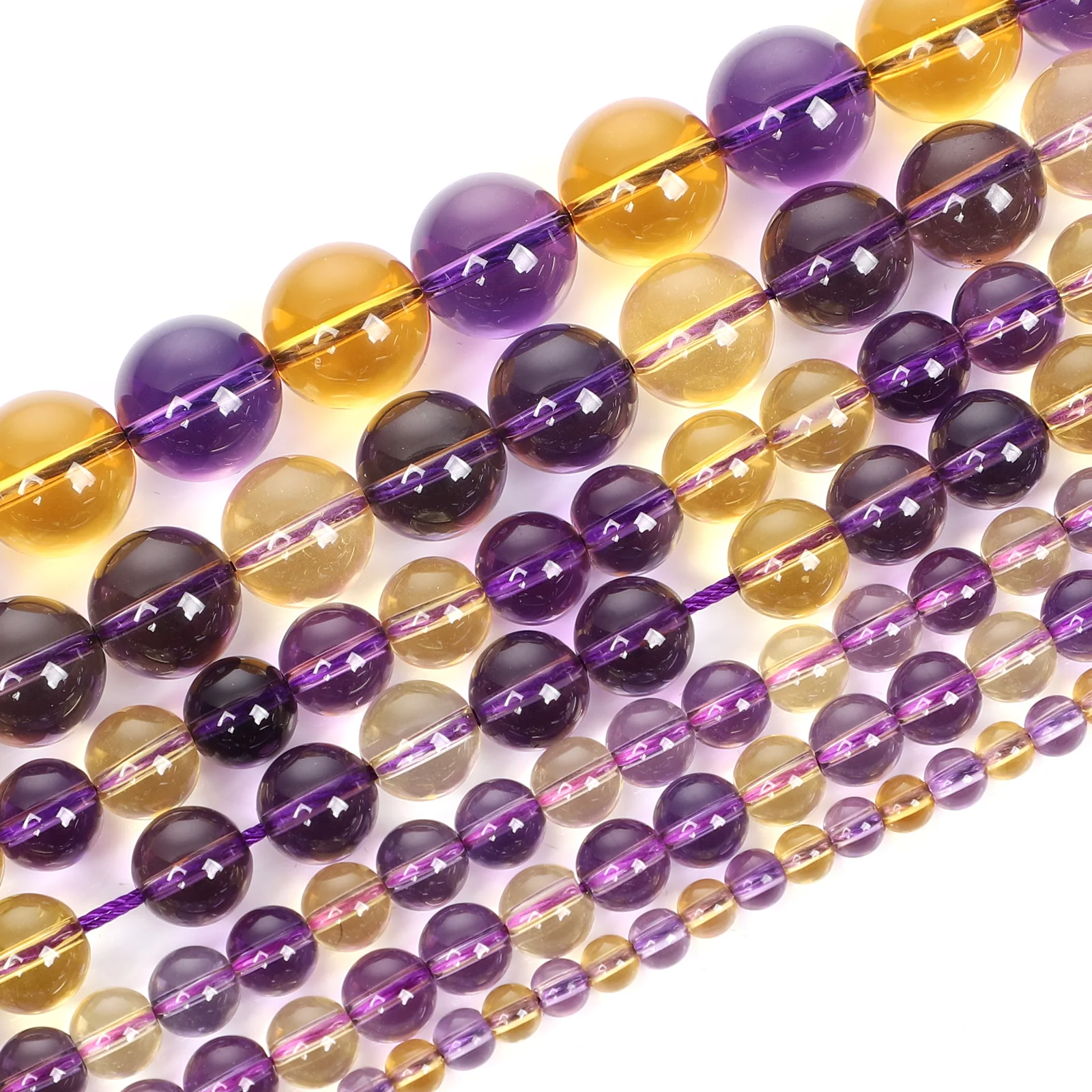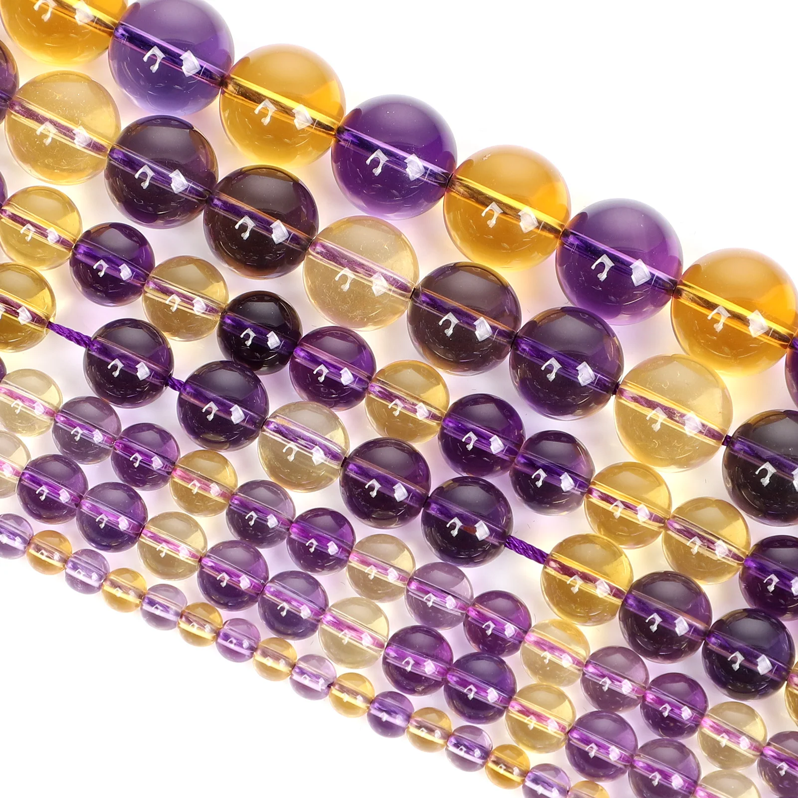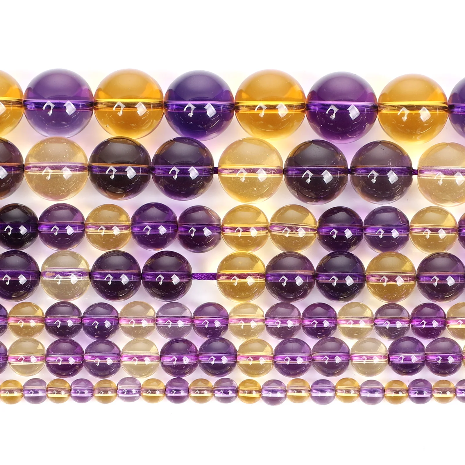 Бусины Ametrines из натурального камня с фиолетовыми и желтыми крис...
