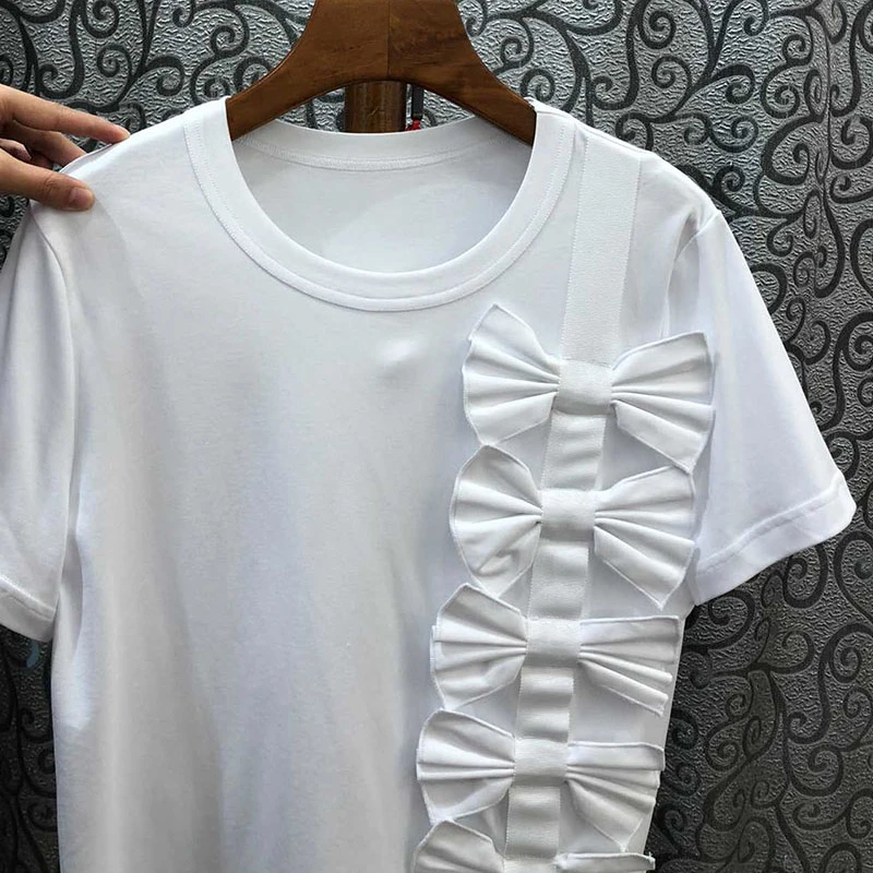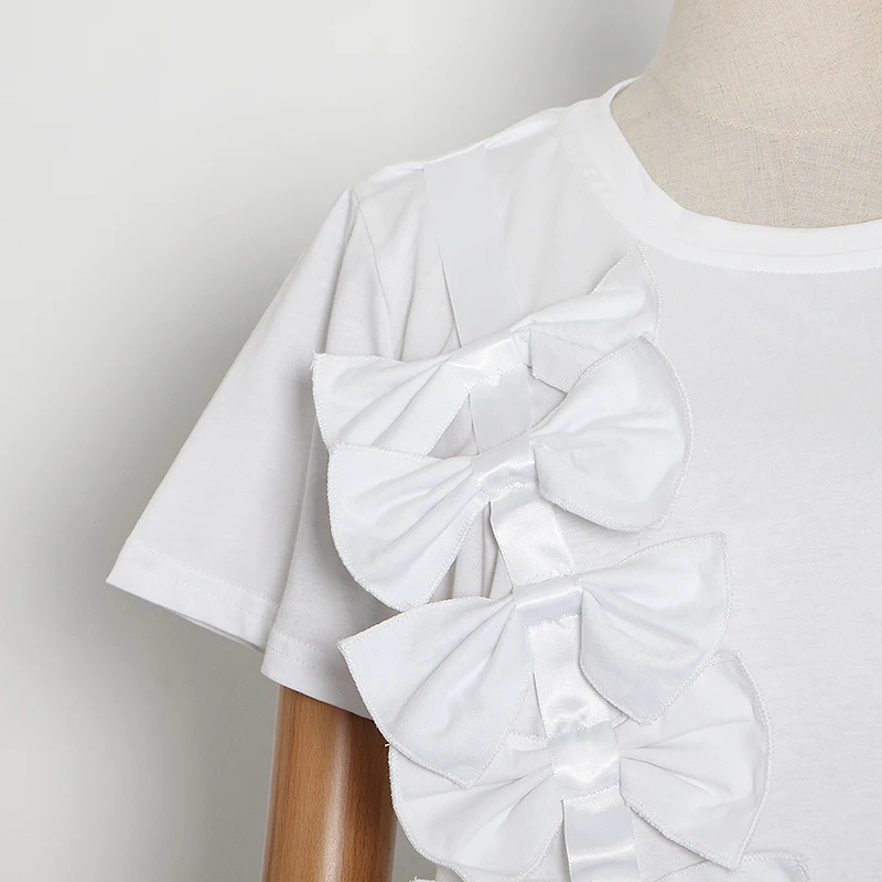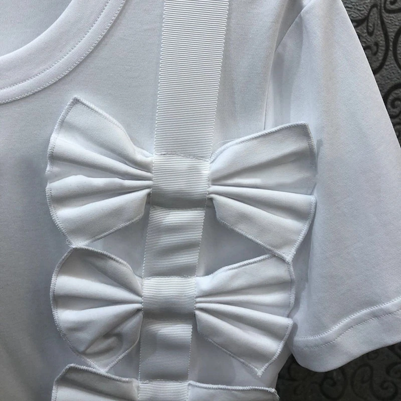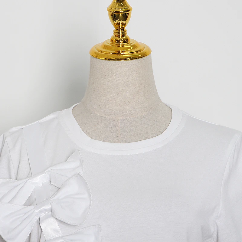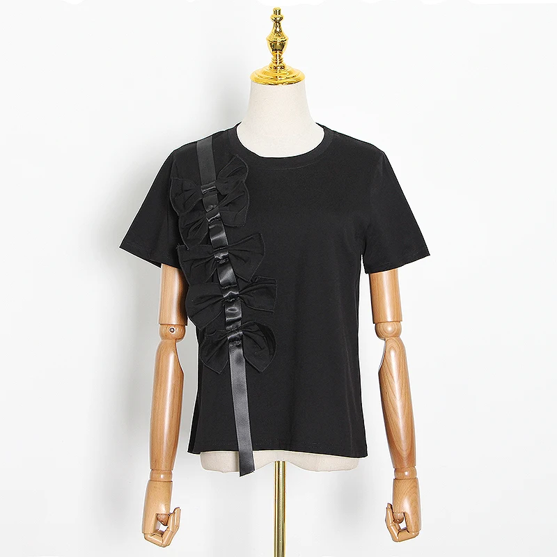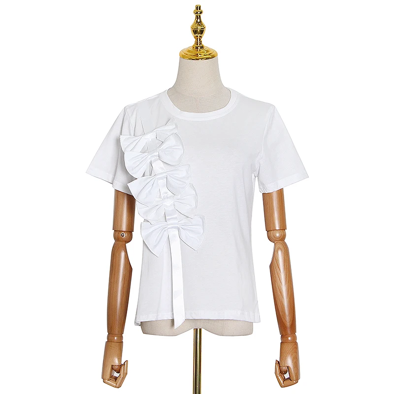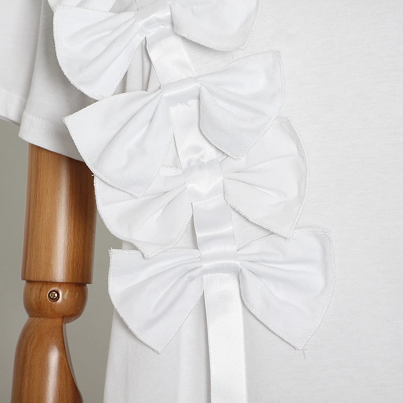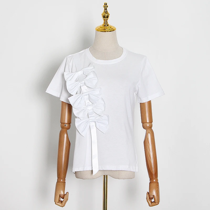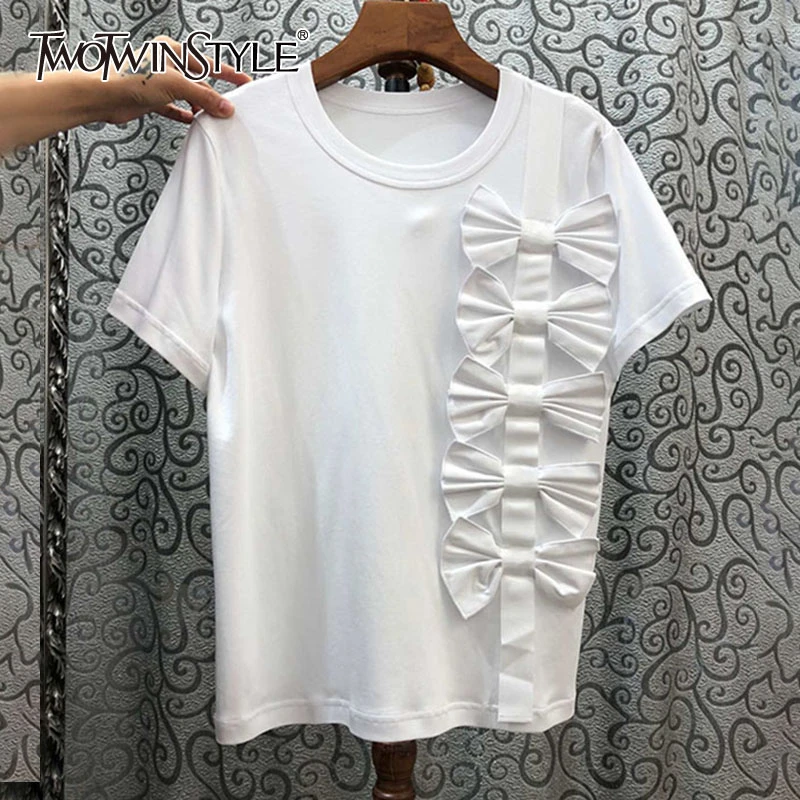 Женская футболка с круглым вырезом TWOTWINSTYLE, повседневная Асимметричная футболка с коротким рукавом и бантом