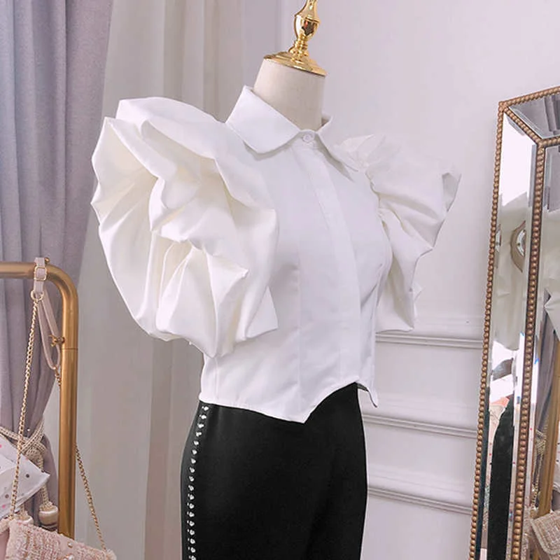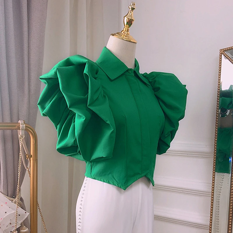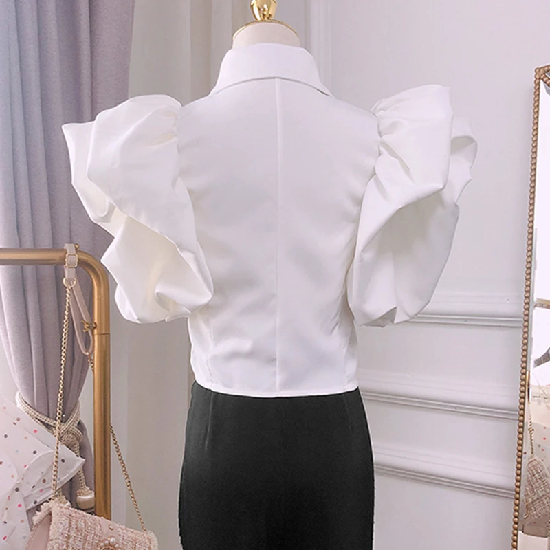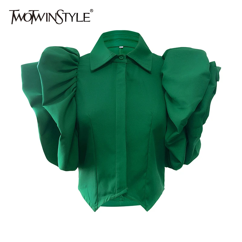Женская блузка с оборками TWOTWINSTYLE, винтажная Свободная рубашка с отложным воротником и бабочкой, с коротким рукавом, летняя Новинка 2022